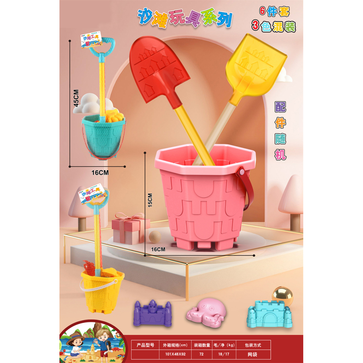 Beach Toys: 6-Piece Set, Mixed Colors |