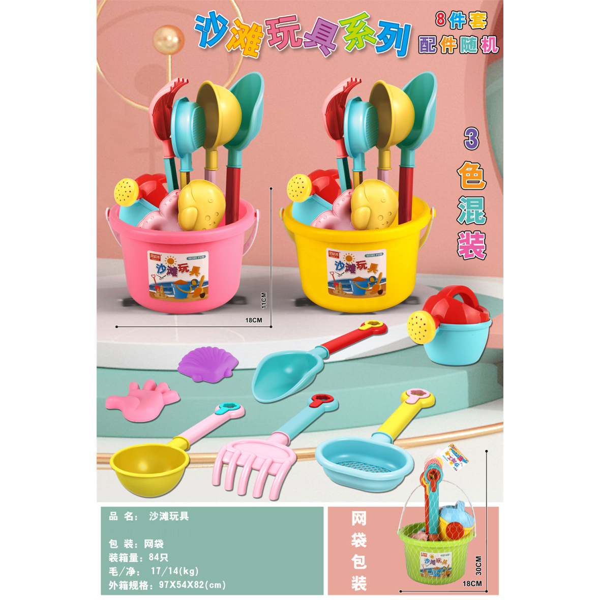 Beach Toys: 8-Piece Set, Mixed Colors |