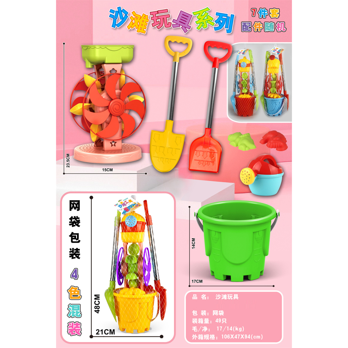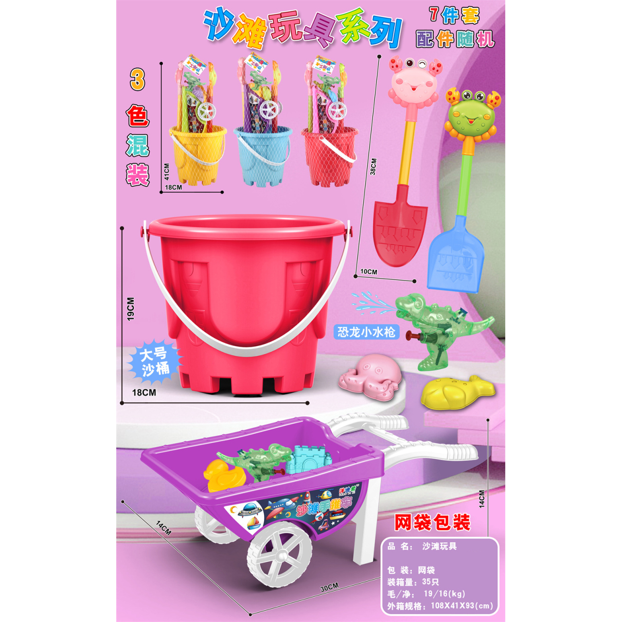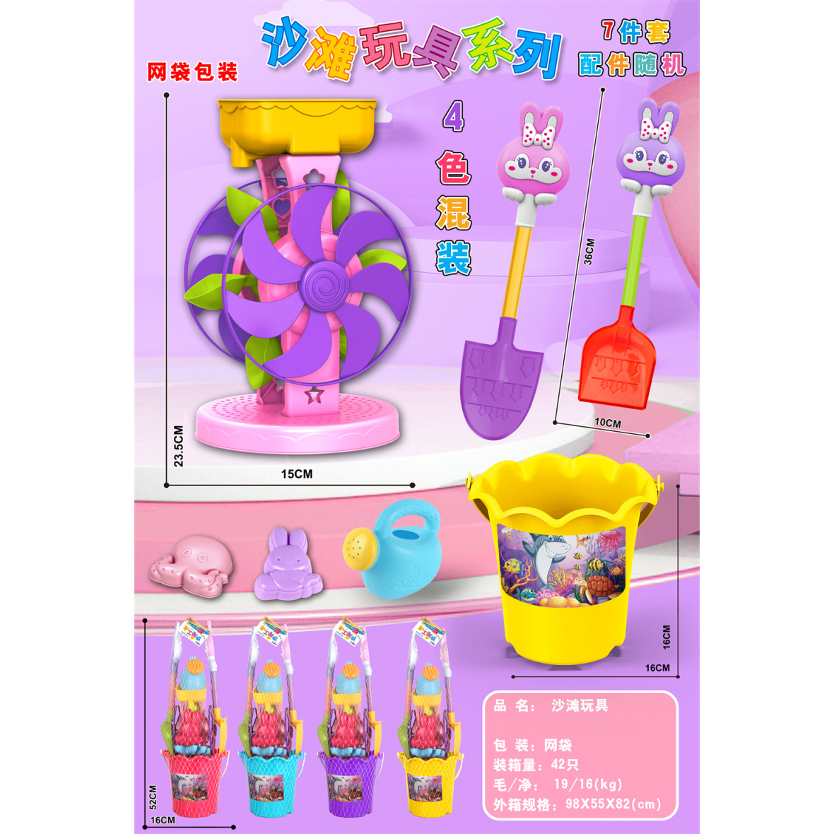 Beach Toys: 7-Piece Set, Mixed Colors |