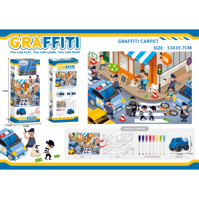 City Police Carpet + 1 Inertia Police Car + 8 Coloring Pens (2-in-1) |
