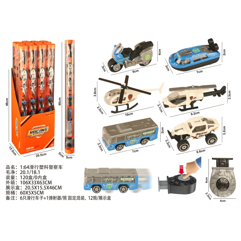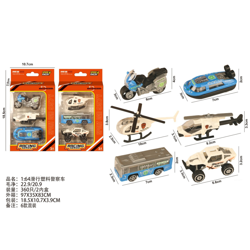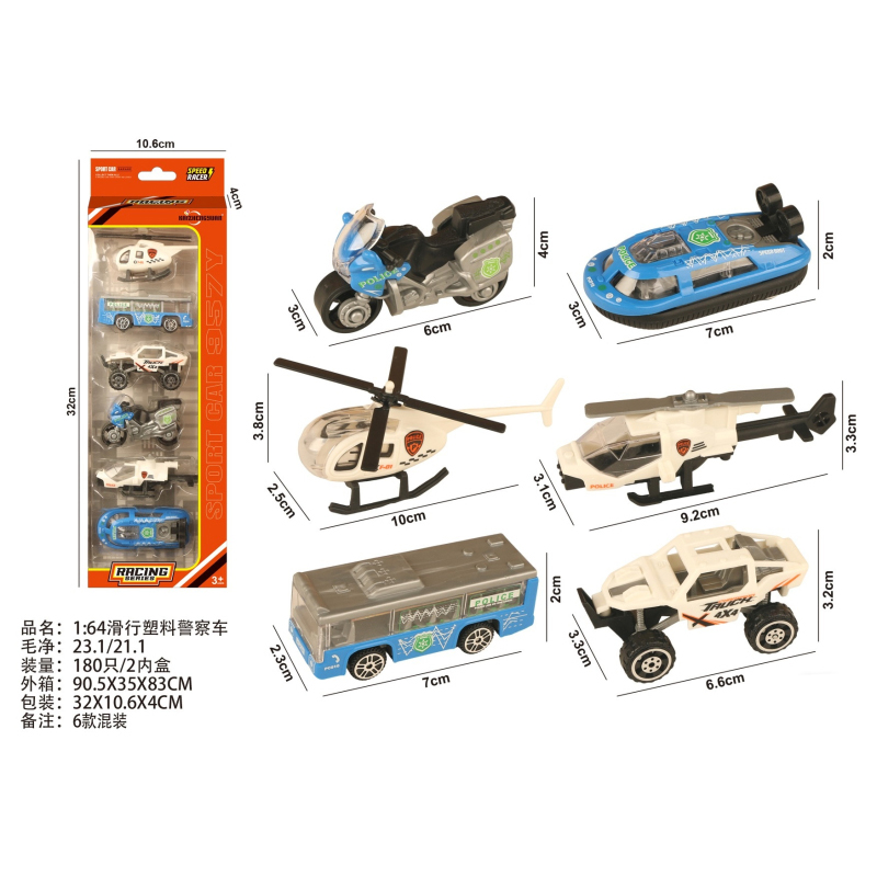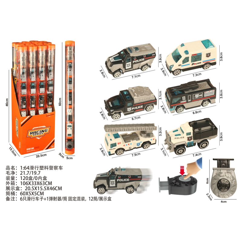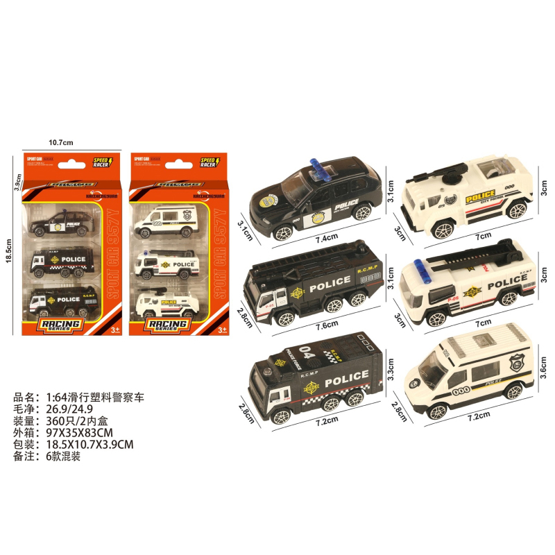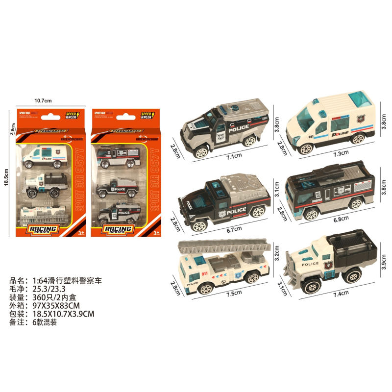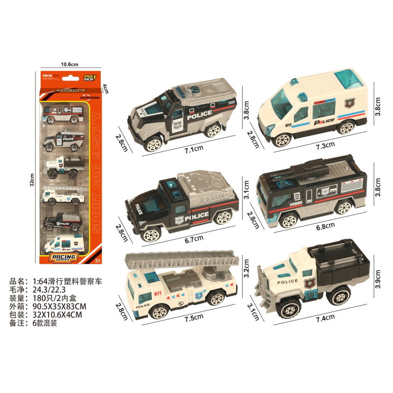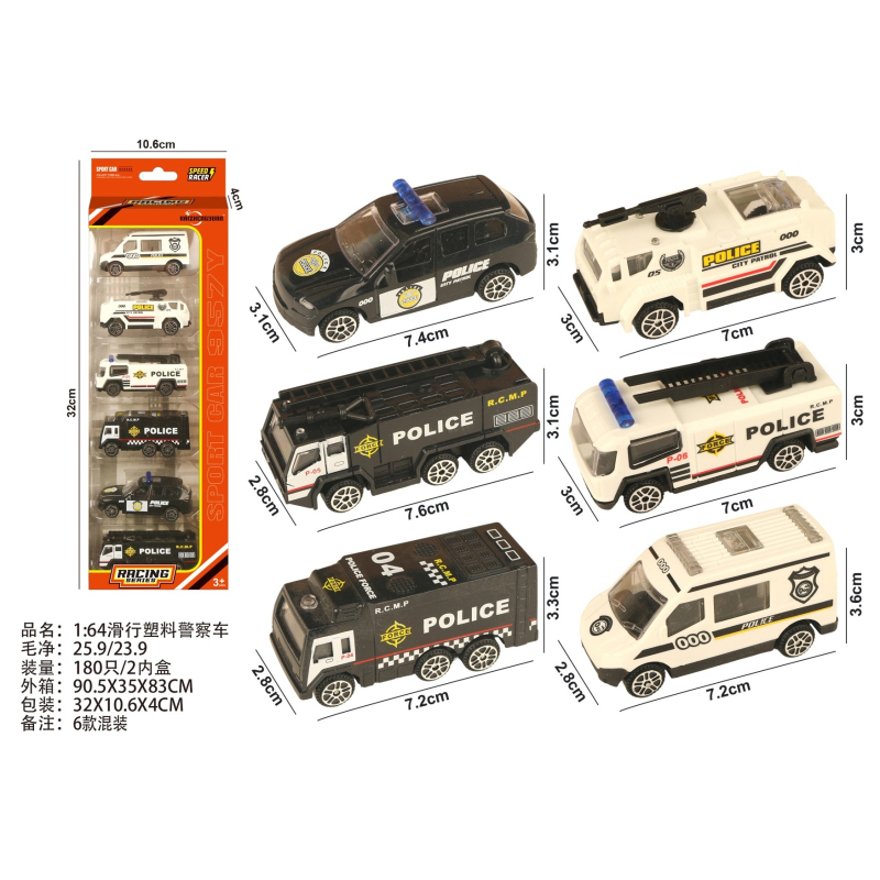 1:64 Slide Plastic Police Car |