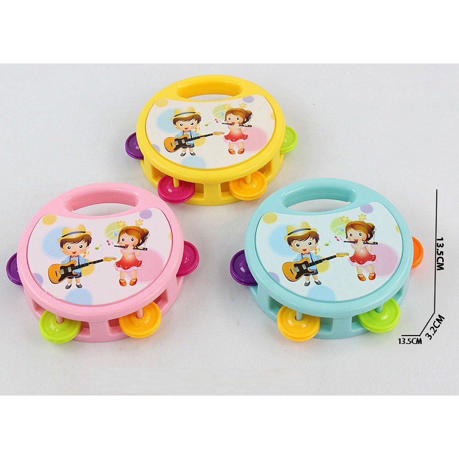 Large tambourine toy pink-yellow-green. |