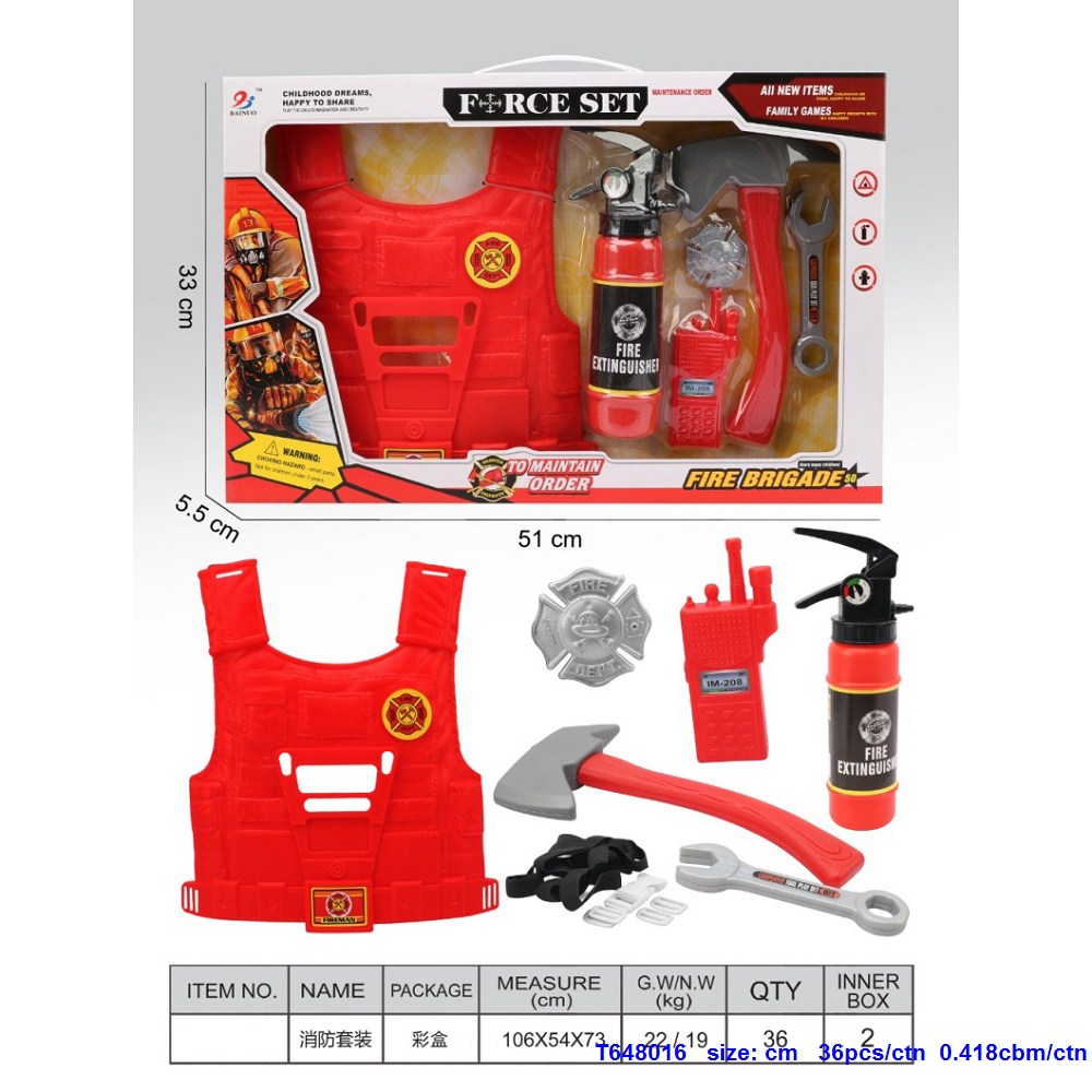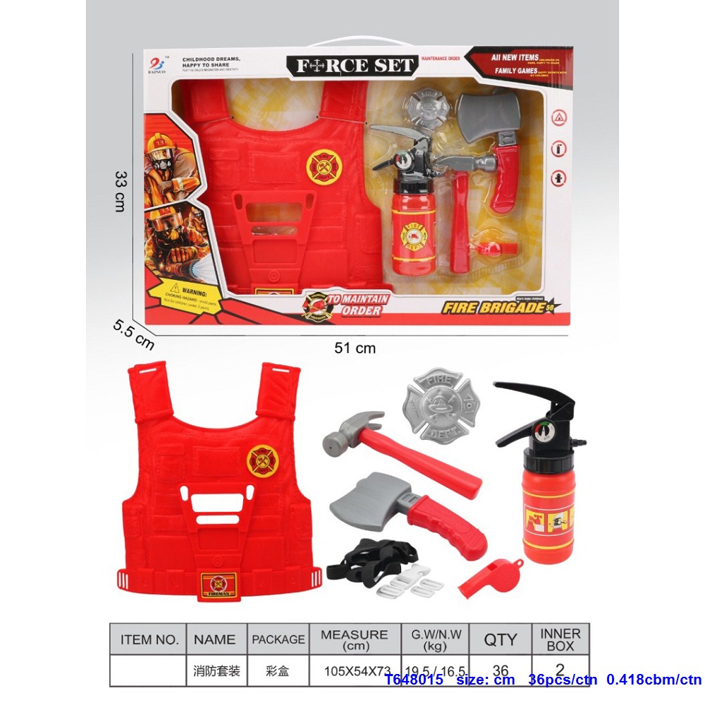 Window Box Firefighter Plastic Vest Clothes Tool Set |