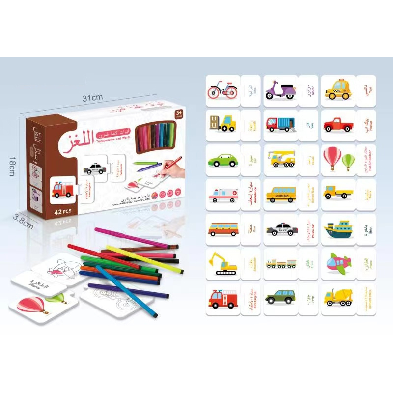 Arabic transport matching puzzle 42PCS + 12 pens |