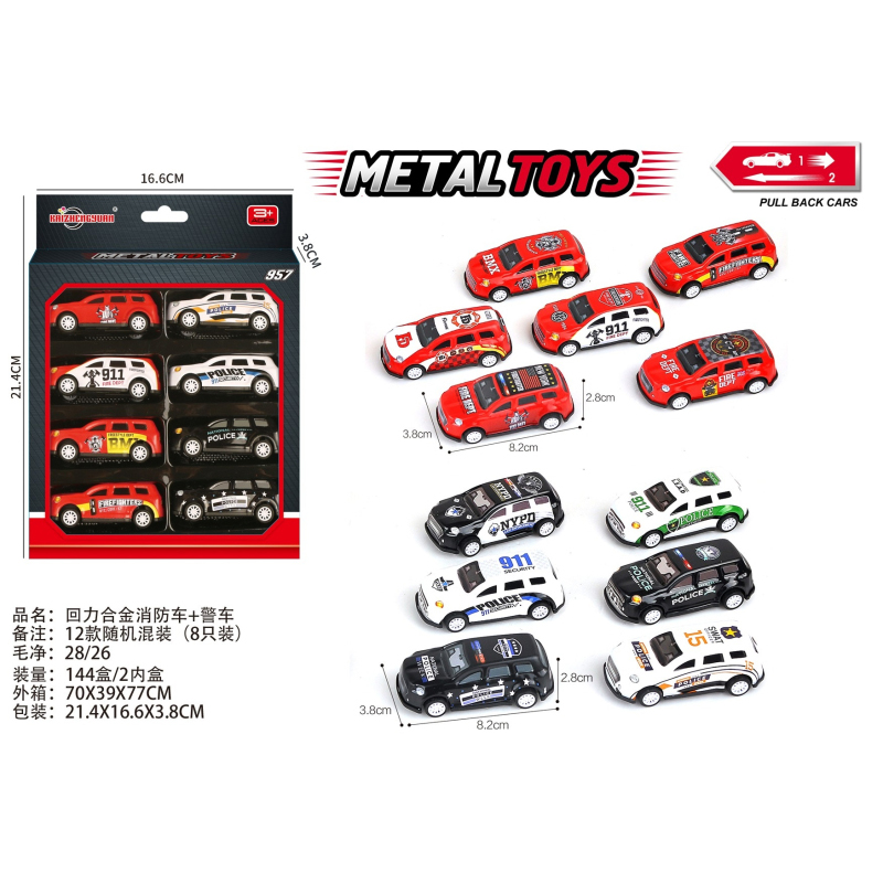Pull-Back Alloy Fire Police Car |
