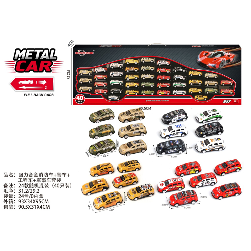 Pull-Back Alloy Fire Police Construction Military Set |