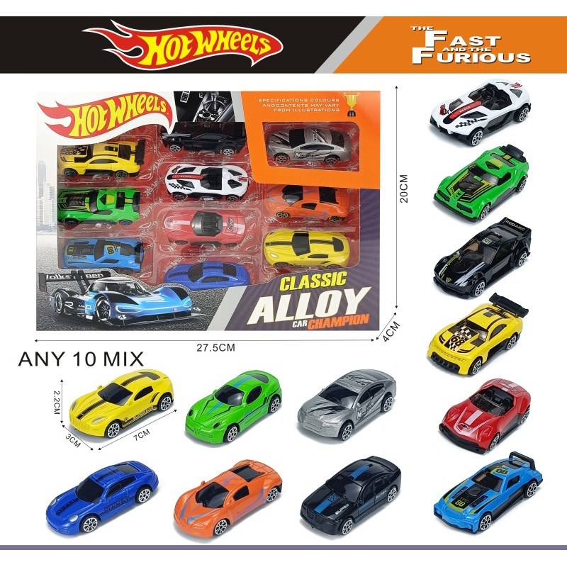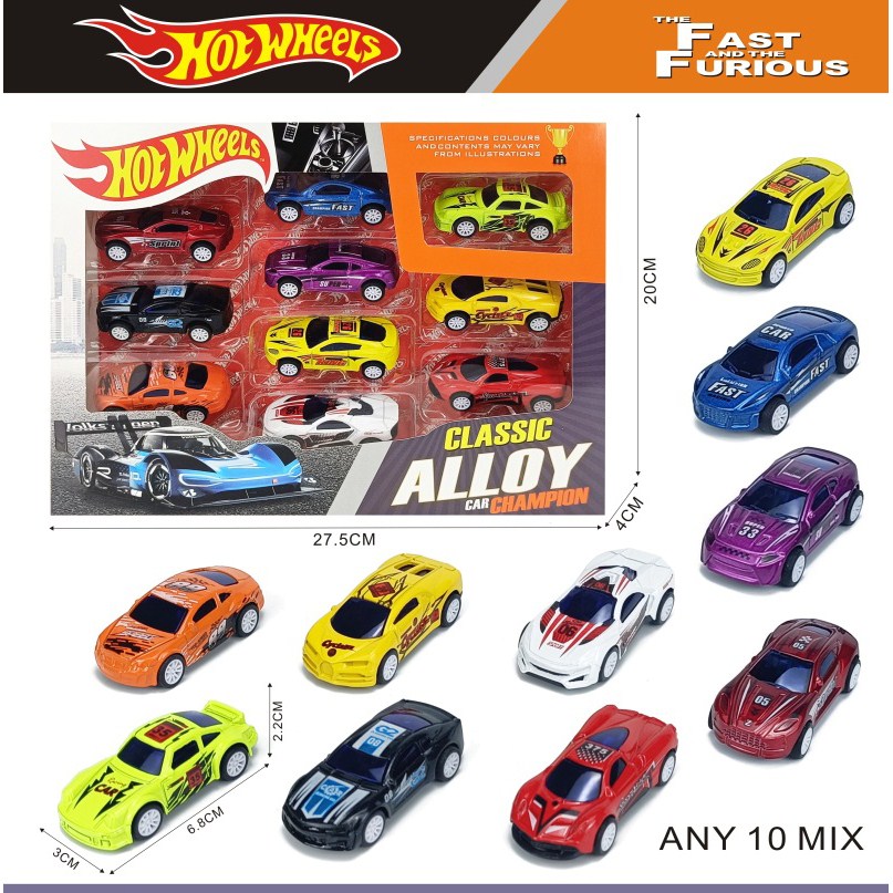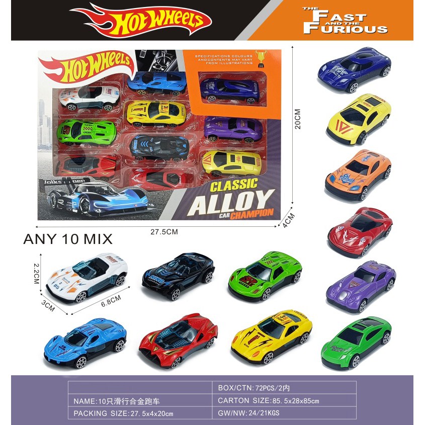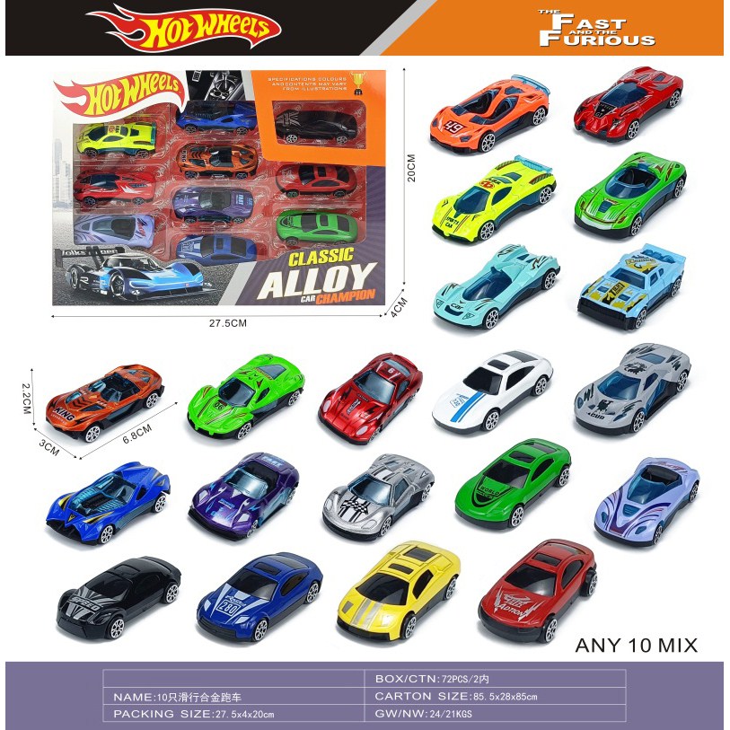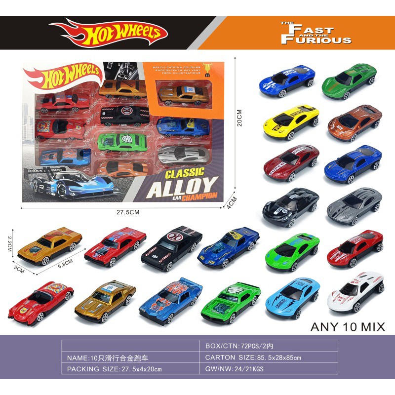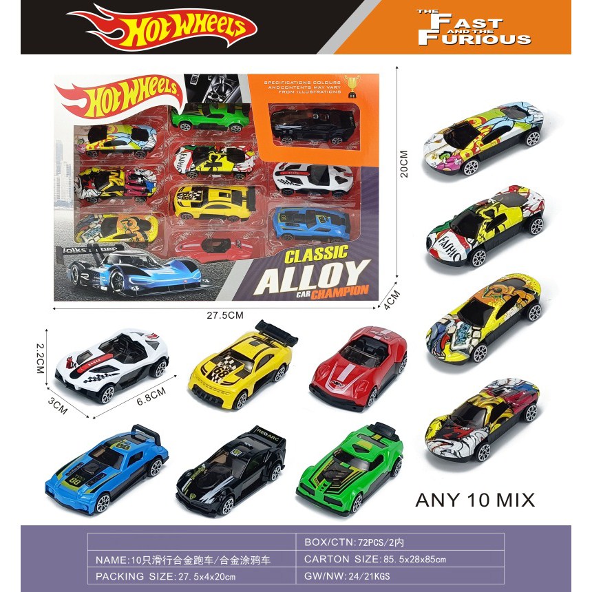 10 sliding alloy cars (road cars + graffiti cars) |