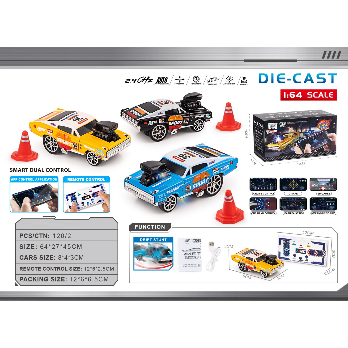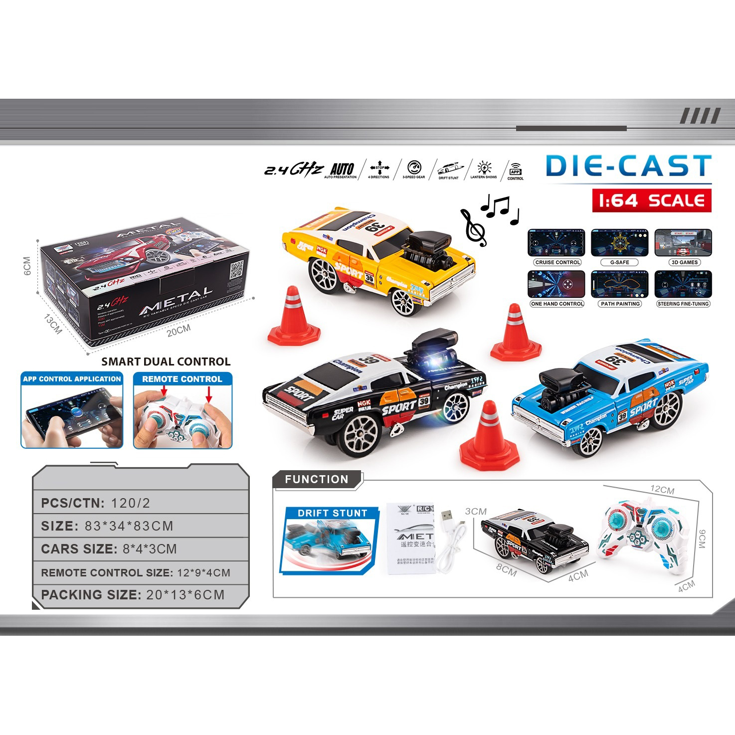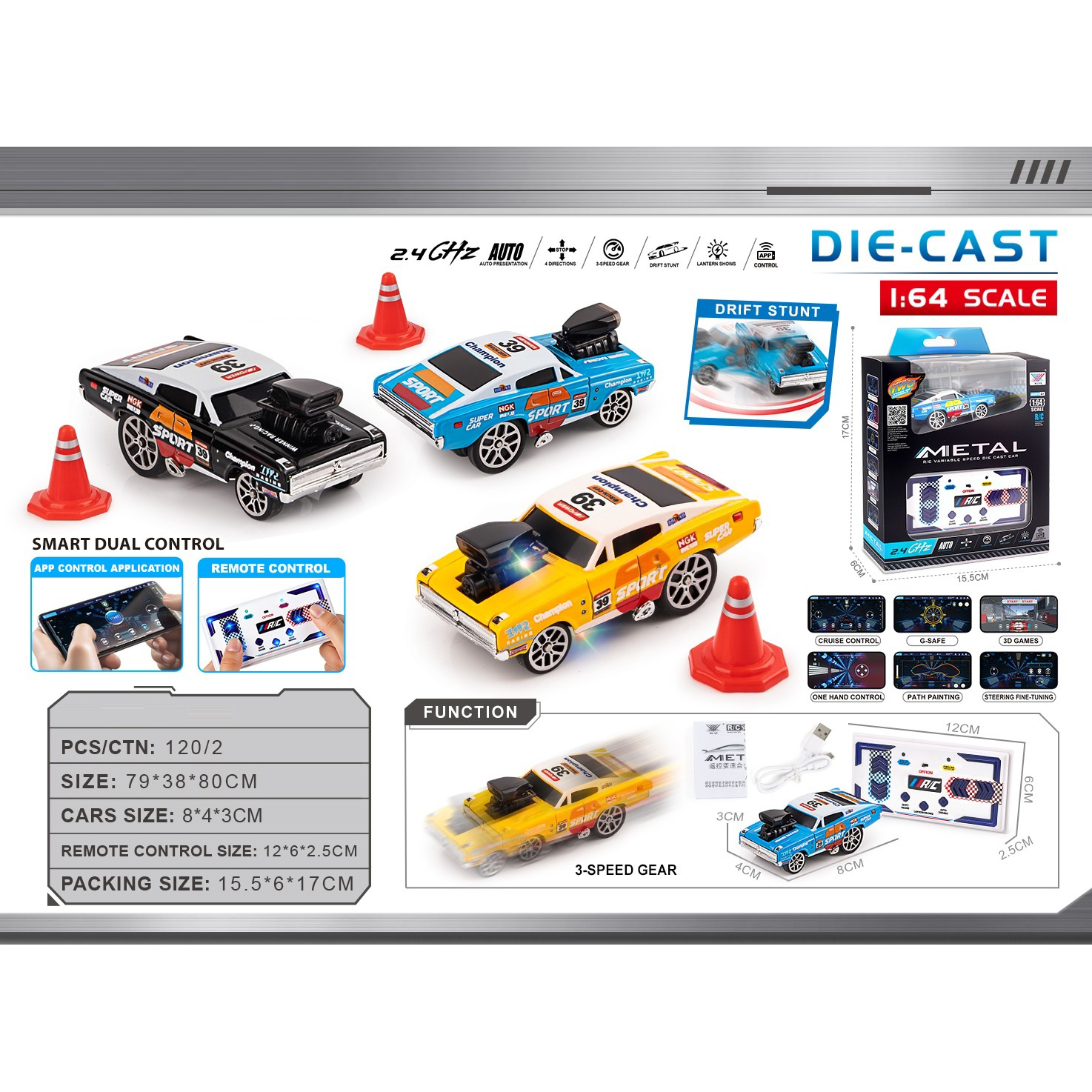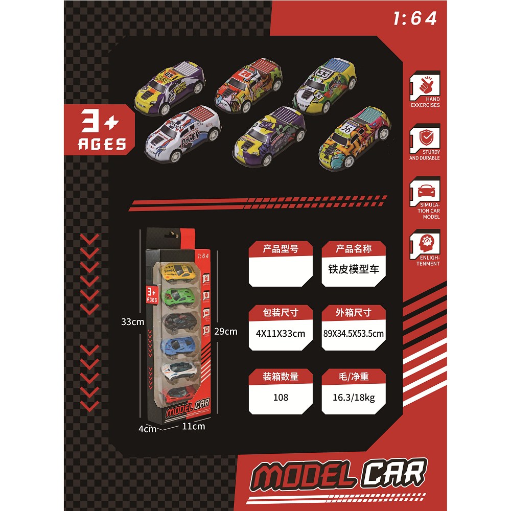 10 sliding alloy cars (road cars + graffiti cars) |