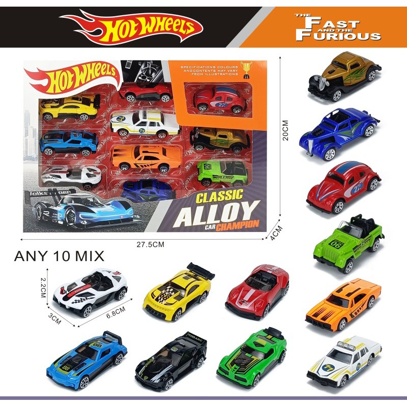 10 sliding alloy cars (road cars + classic cars) |