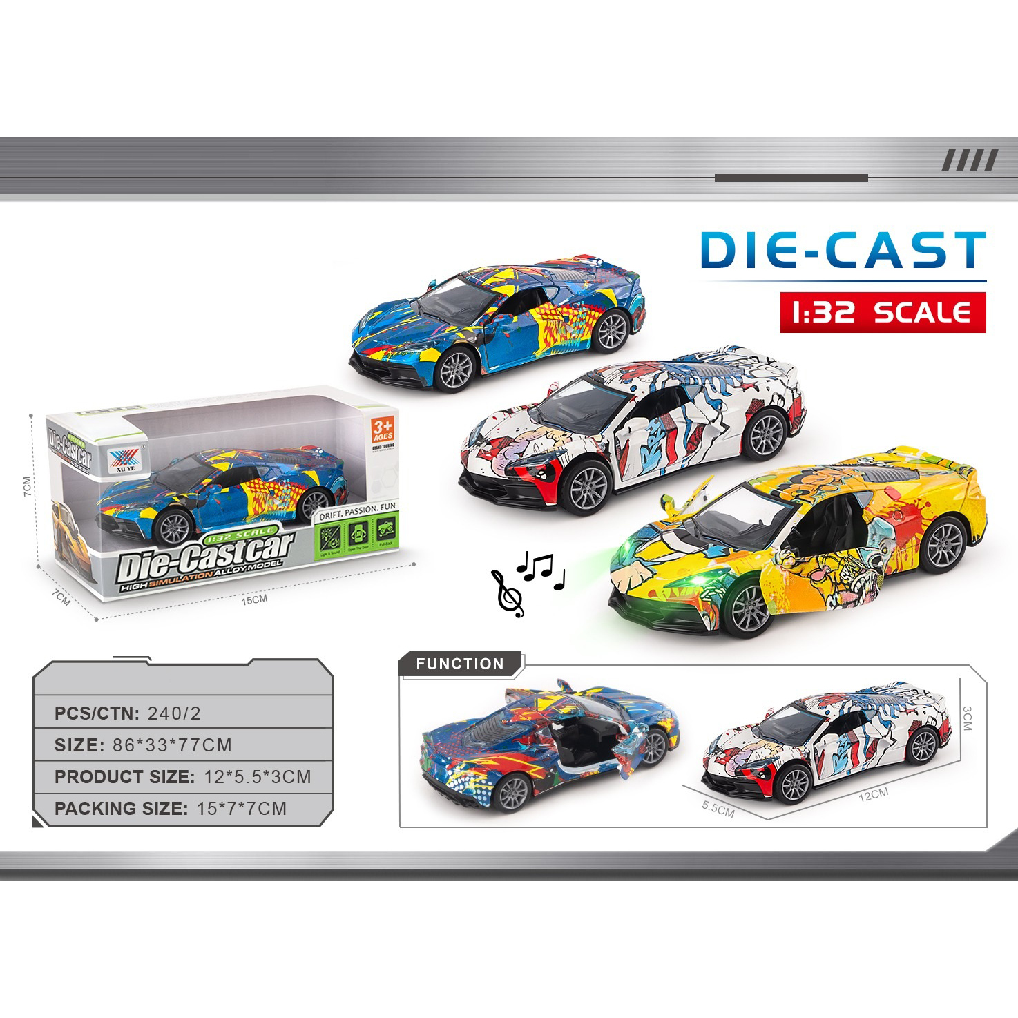1:32 alloy Corvette graffiti opening lights music pullback (1 piece) |