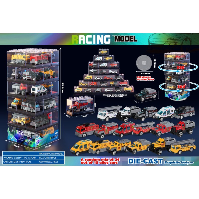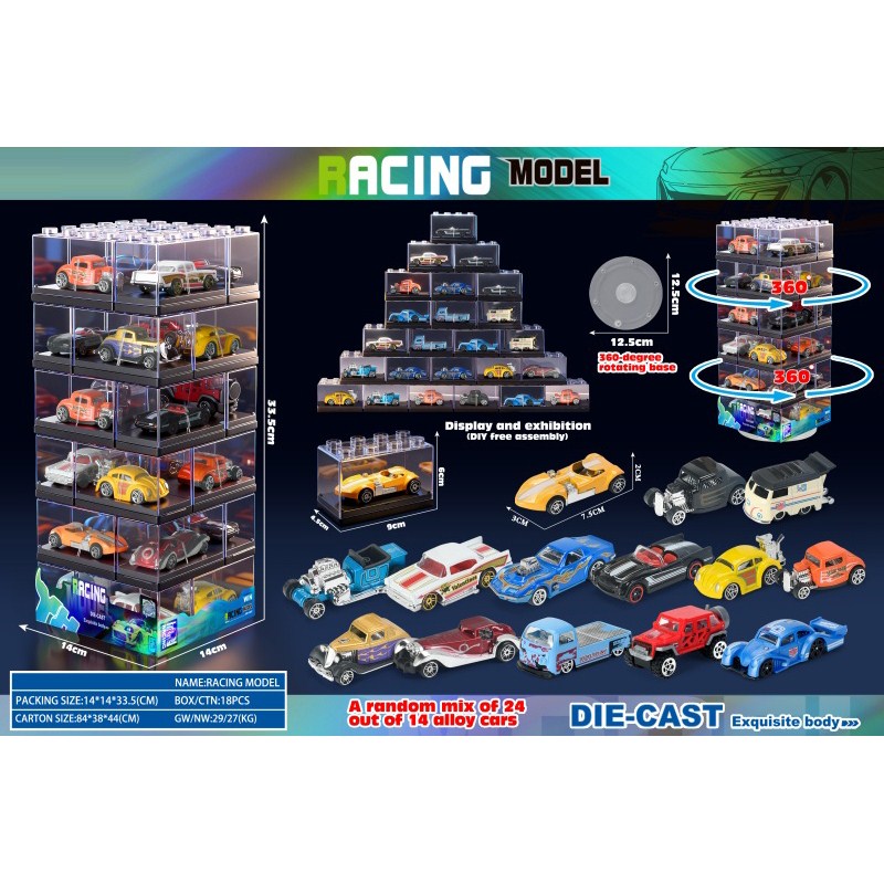 Clear Building Block Box / 24 Alloy Cars |