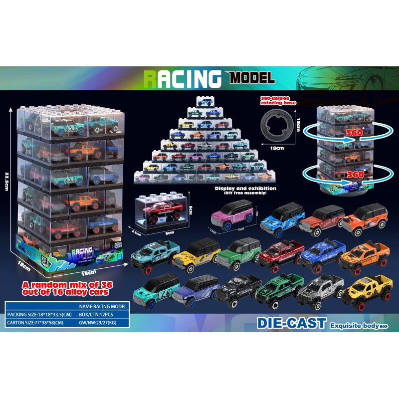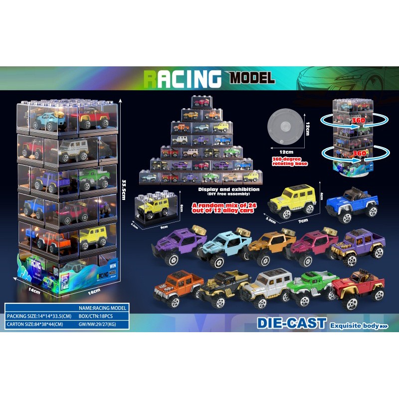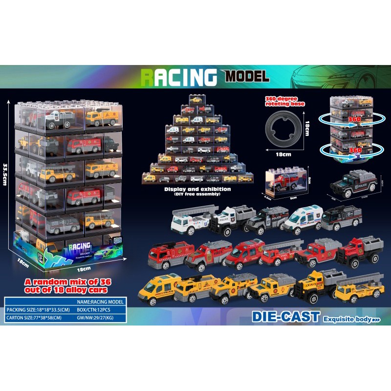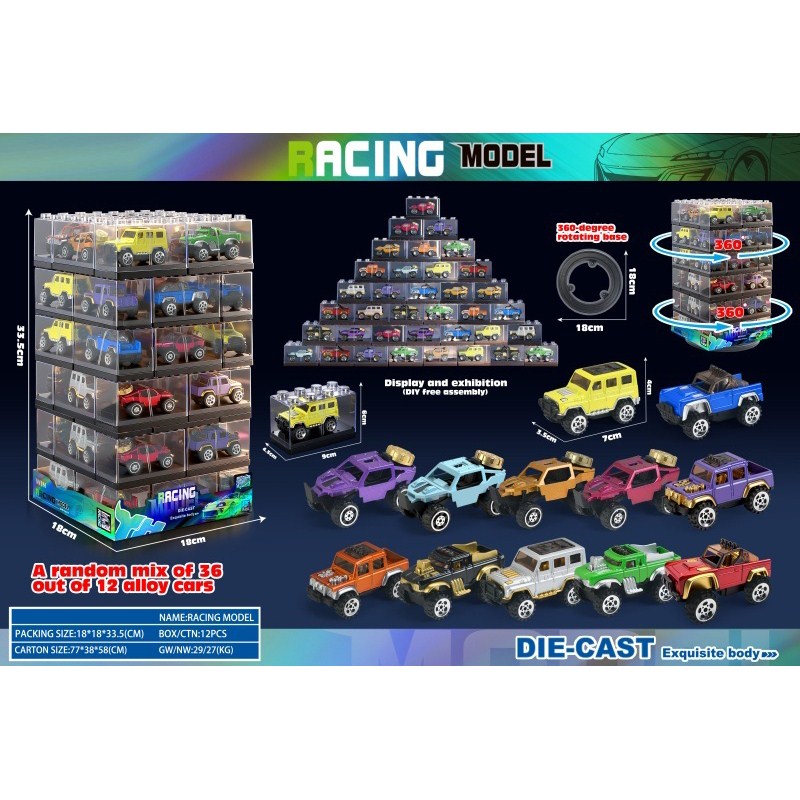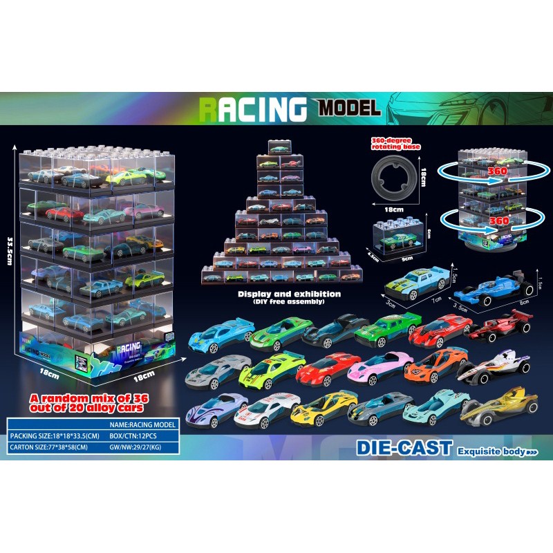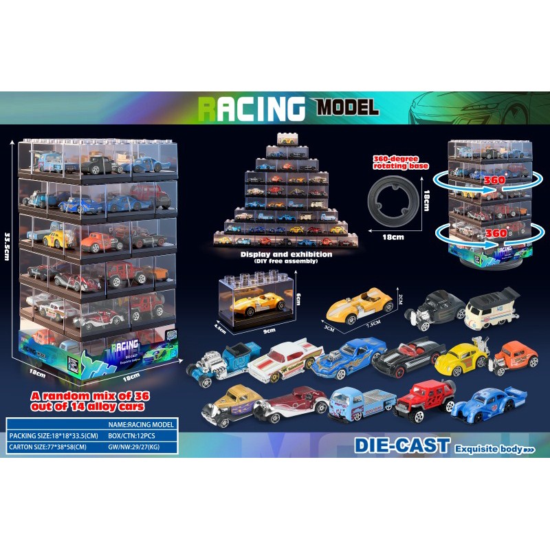 Clear Building Block Box / 36 Alloy Cars |