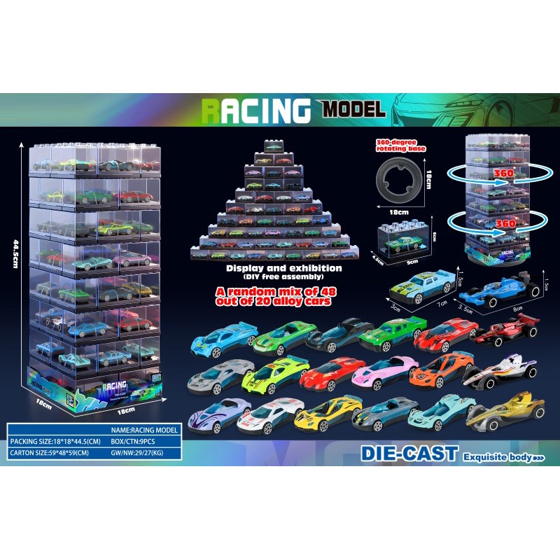 Clear Building Block Box / 48 Alloy Cars |