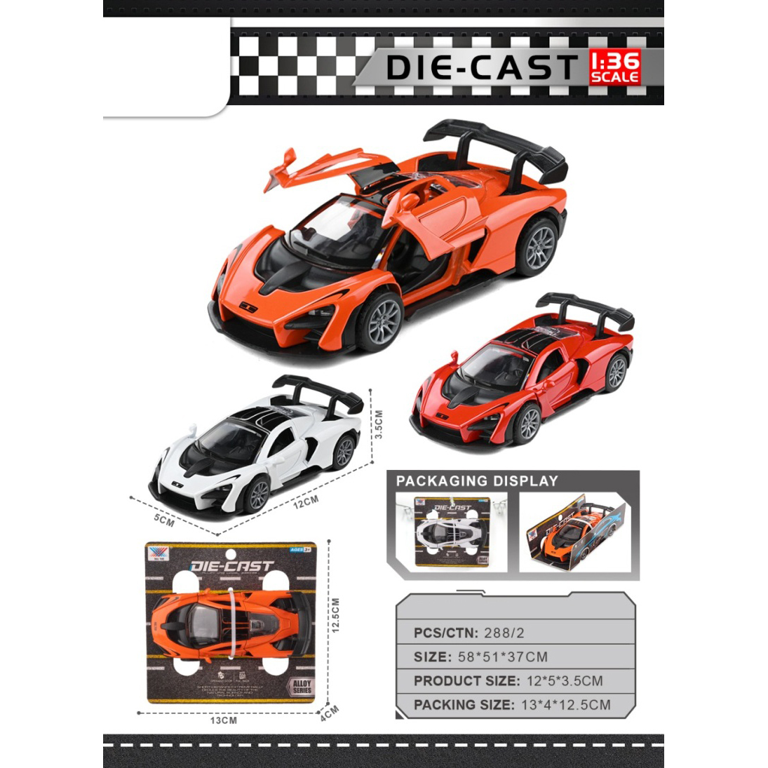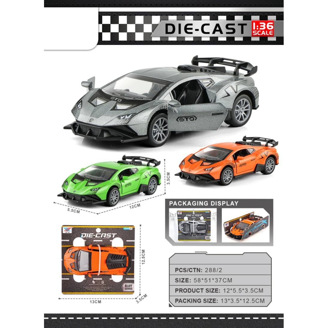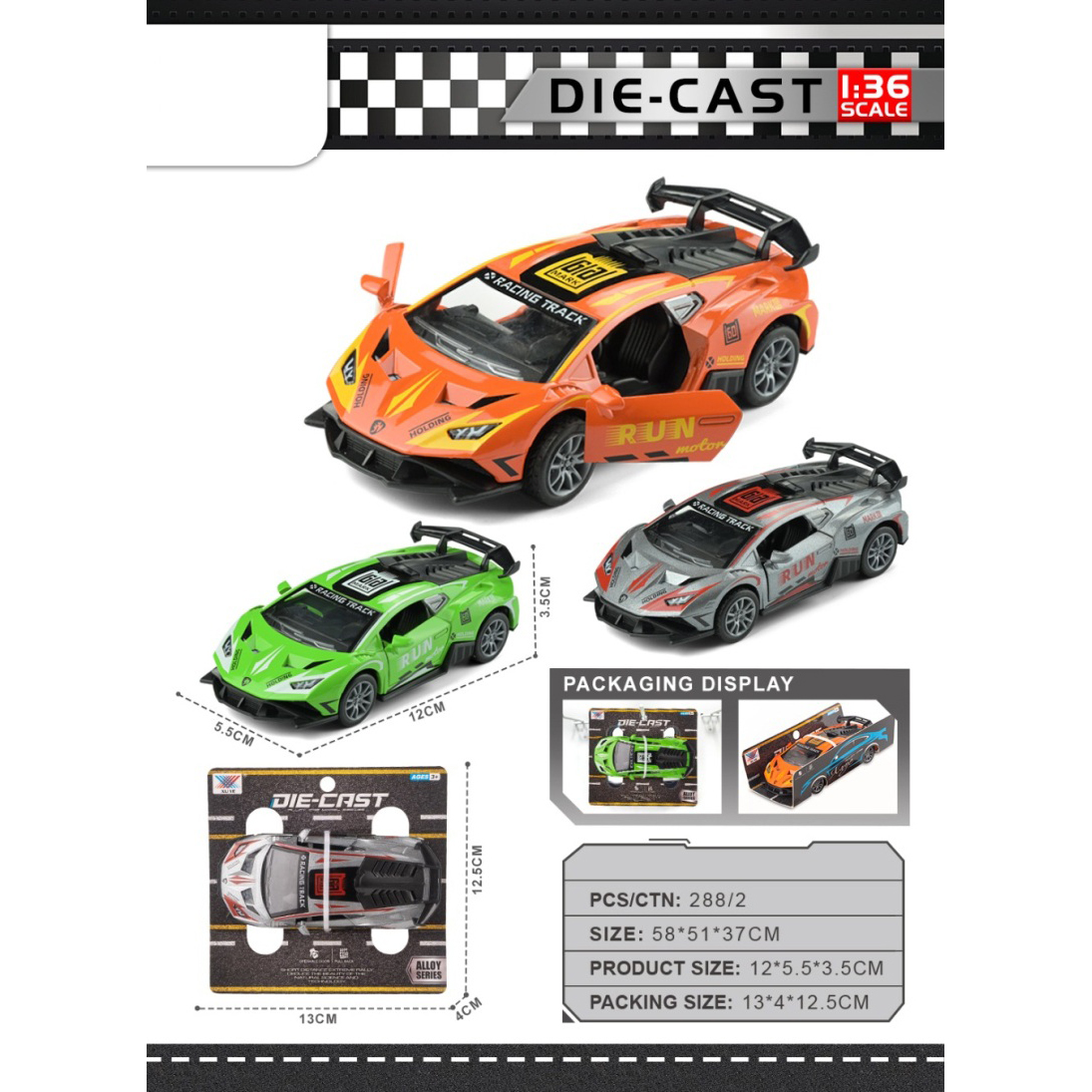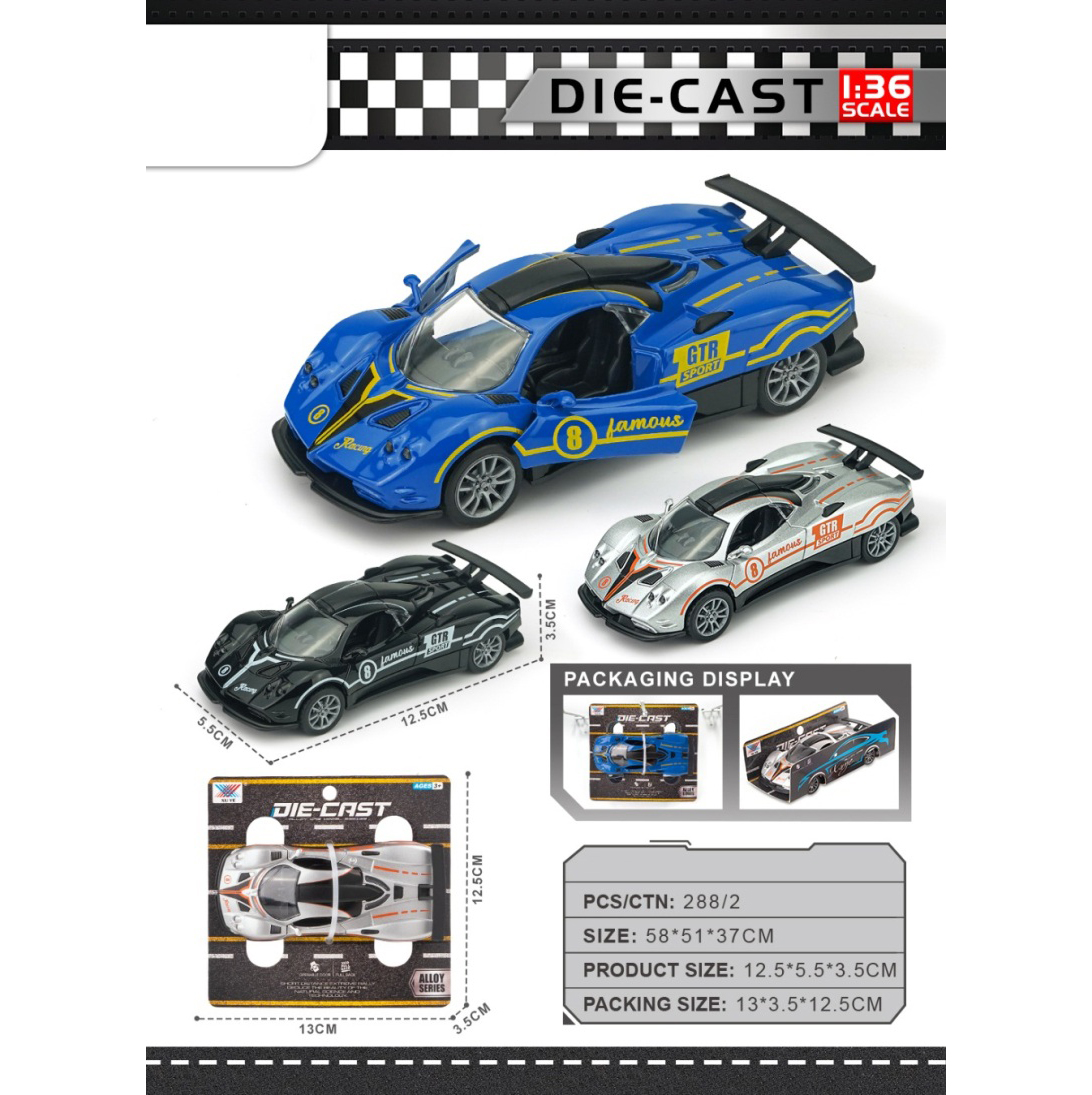 1:36 Alloy Huracan Race Car Open Door |