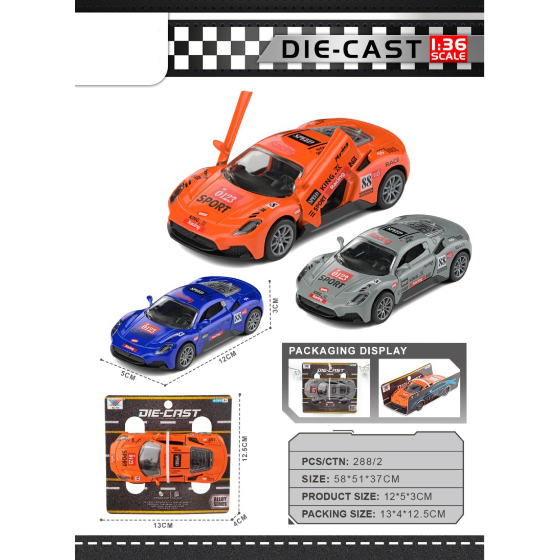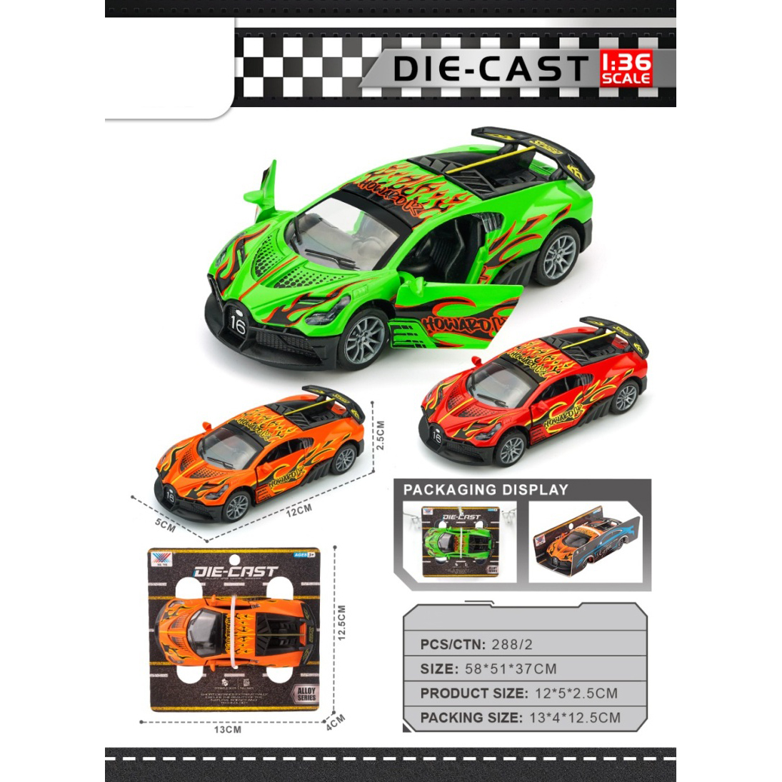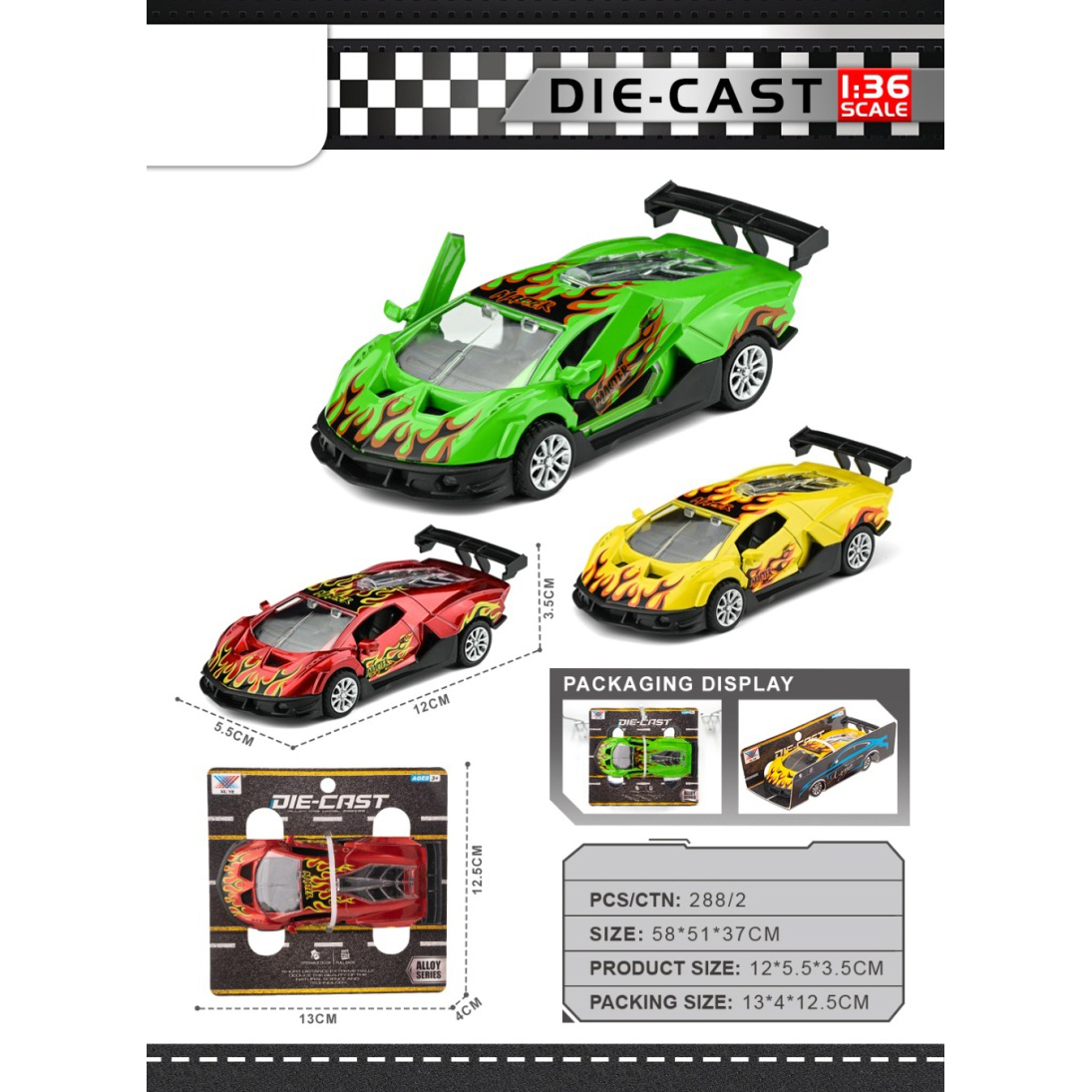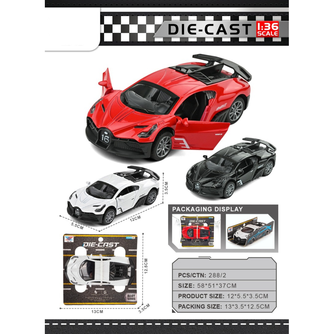 1:36 Alloy Huracan Race Car Open Door |