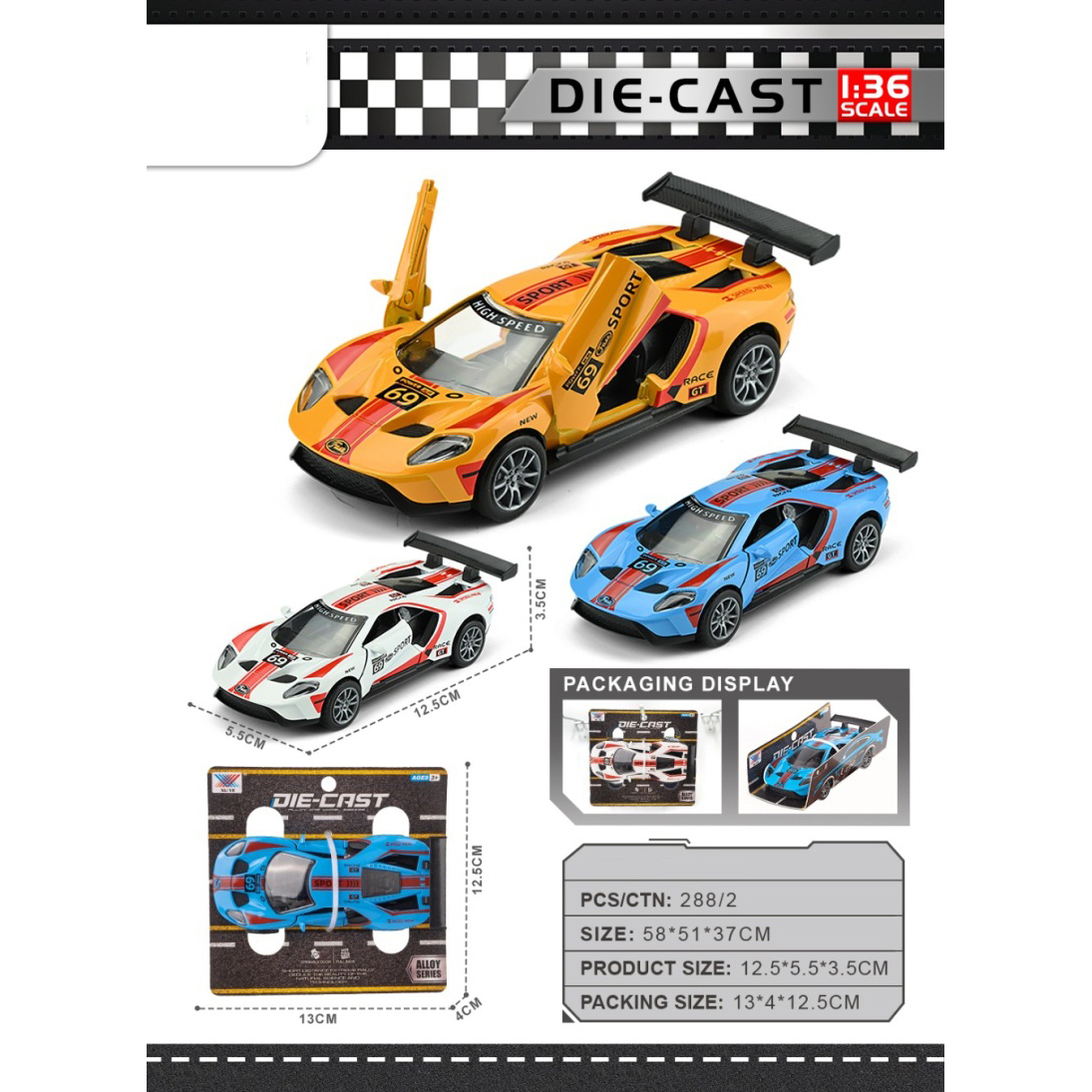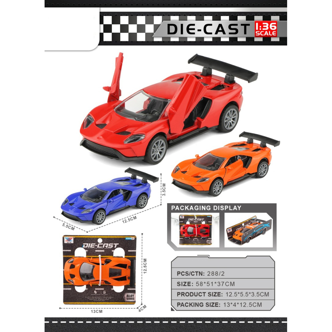 1:36 Alloy Ford Race Car Scissor Door |