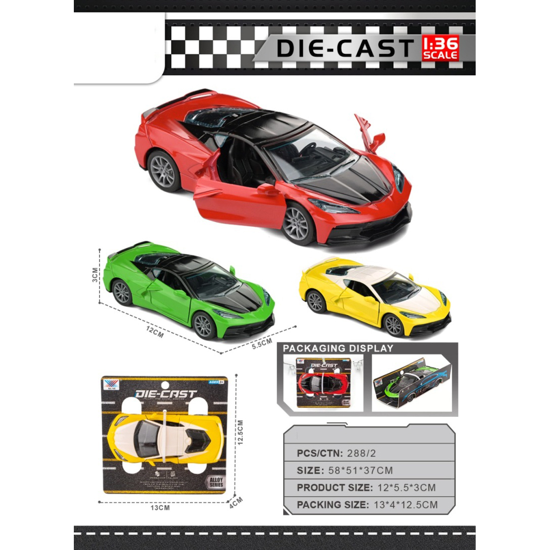 1:36 Alloy Corvette C8 Open Door |