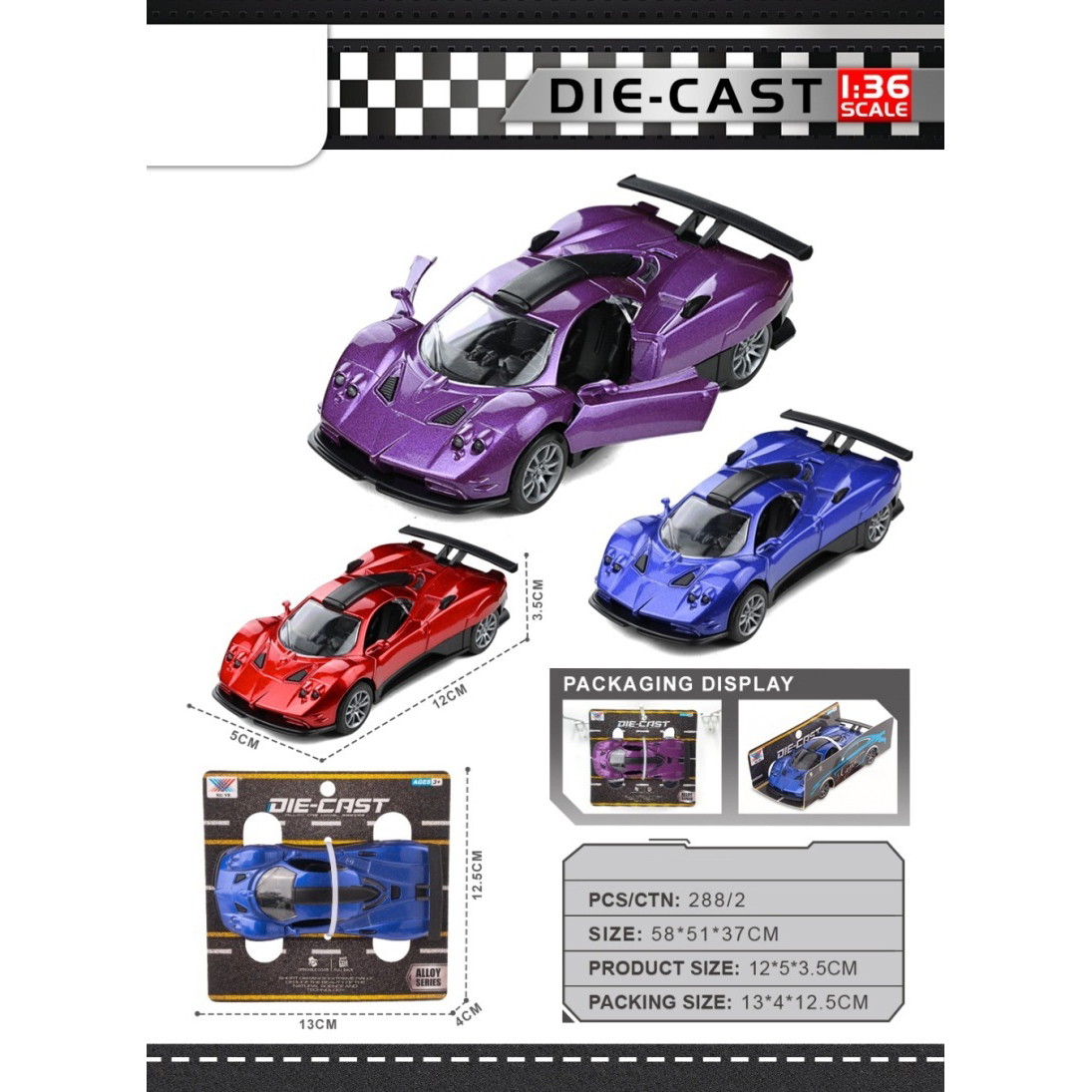 1:36 Alloy Pagani Race Car Open Door |