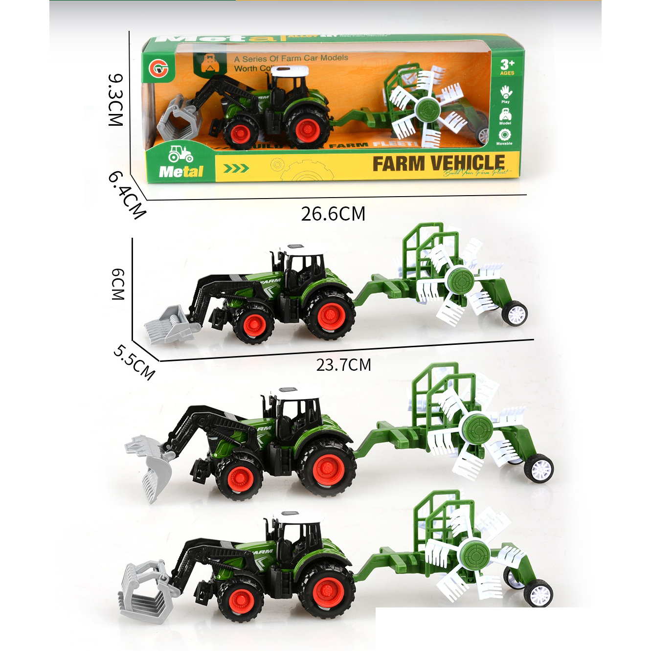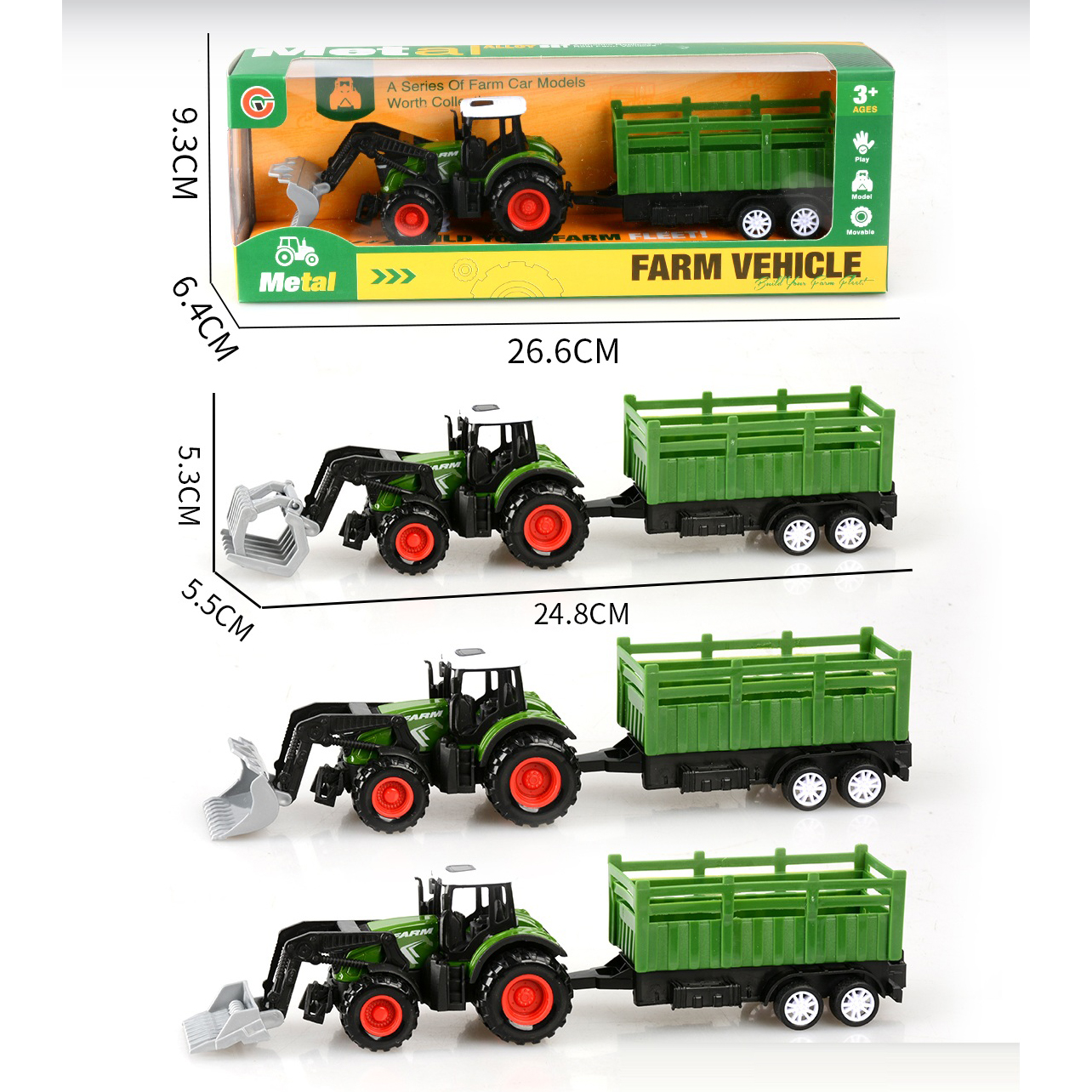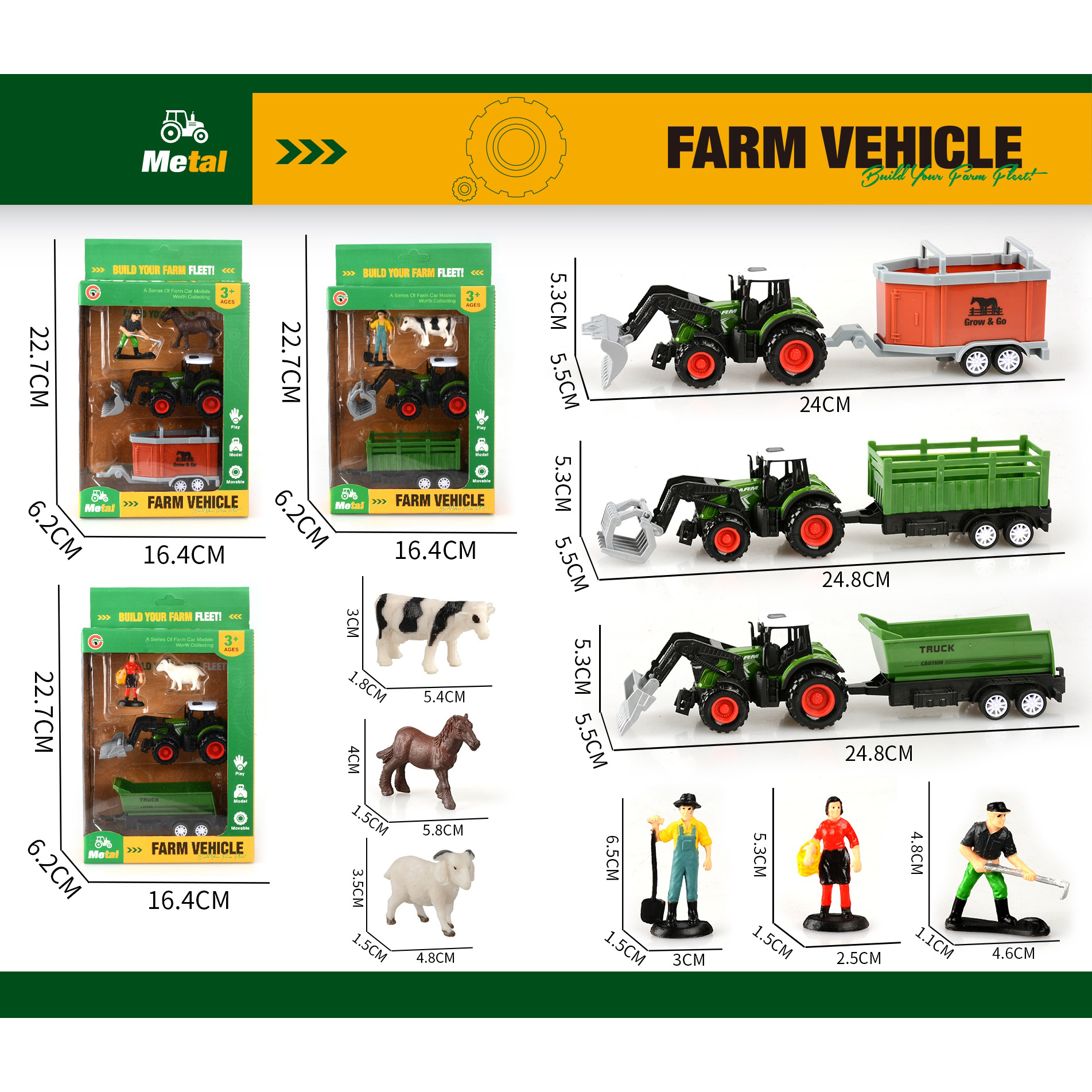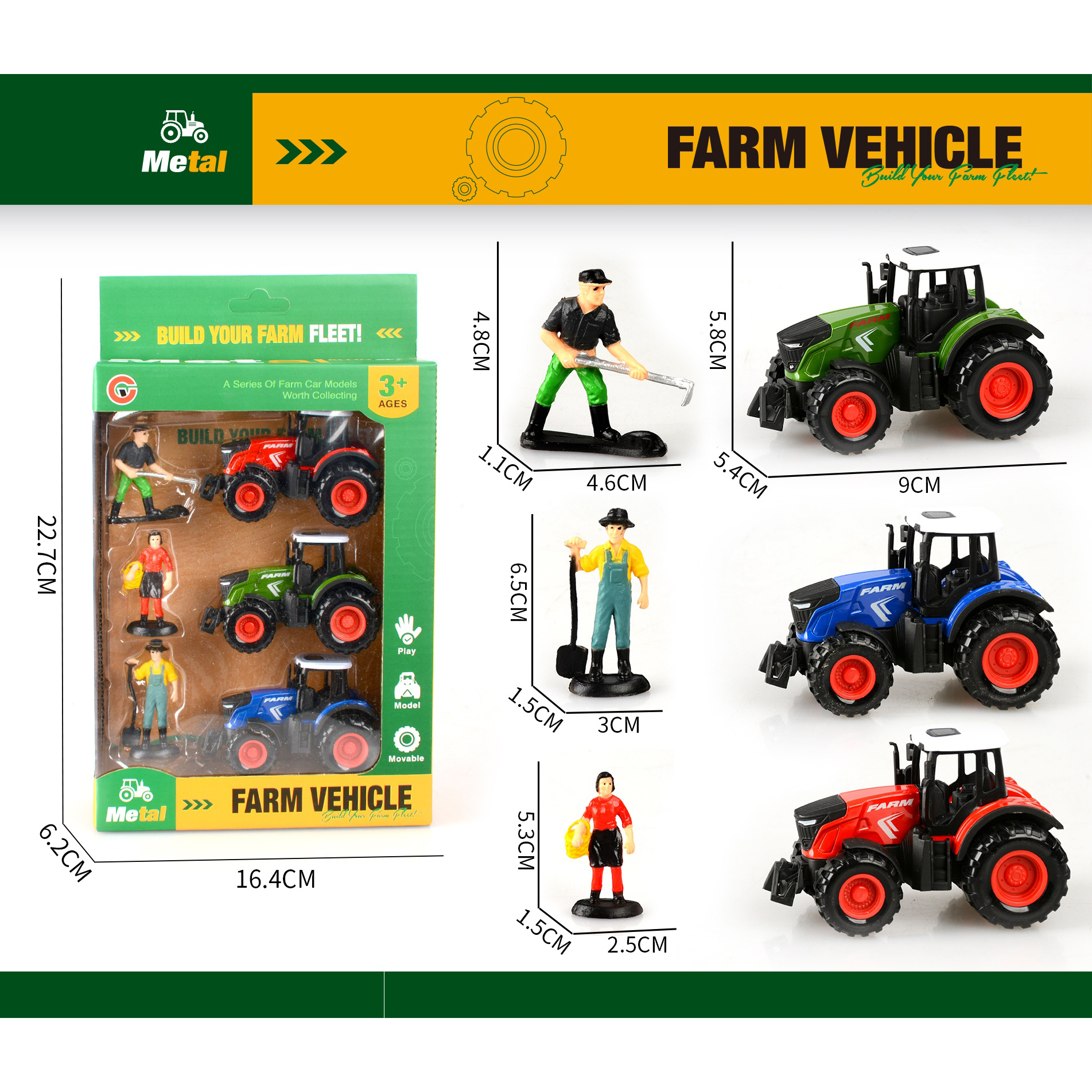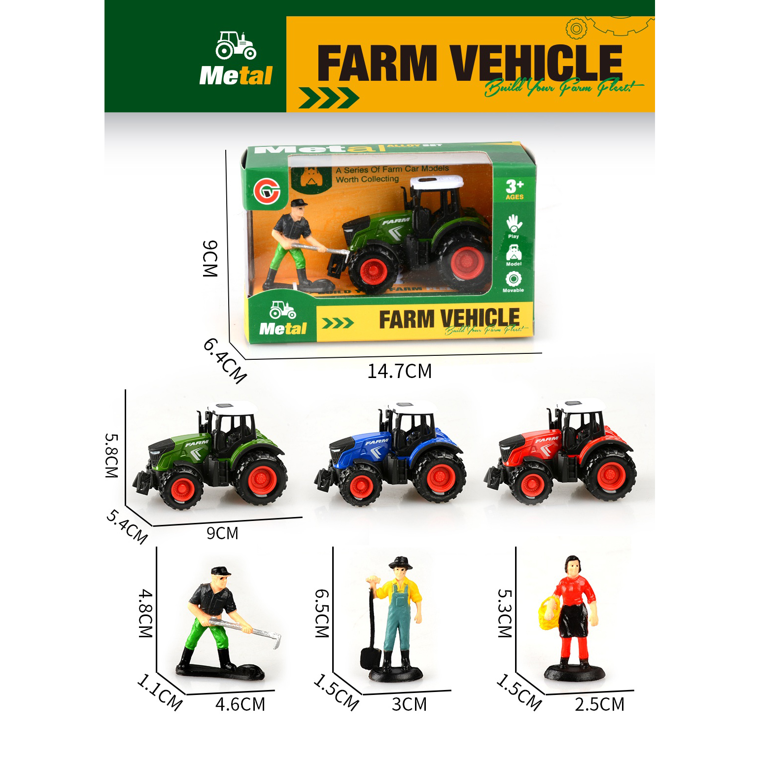 3-pack alloy pull-back farm vehicle set with 3 figurines |
