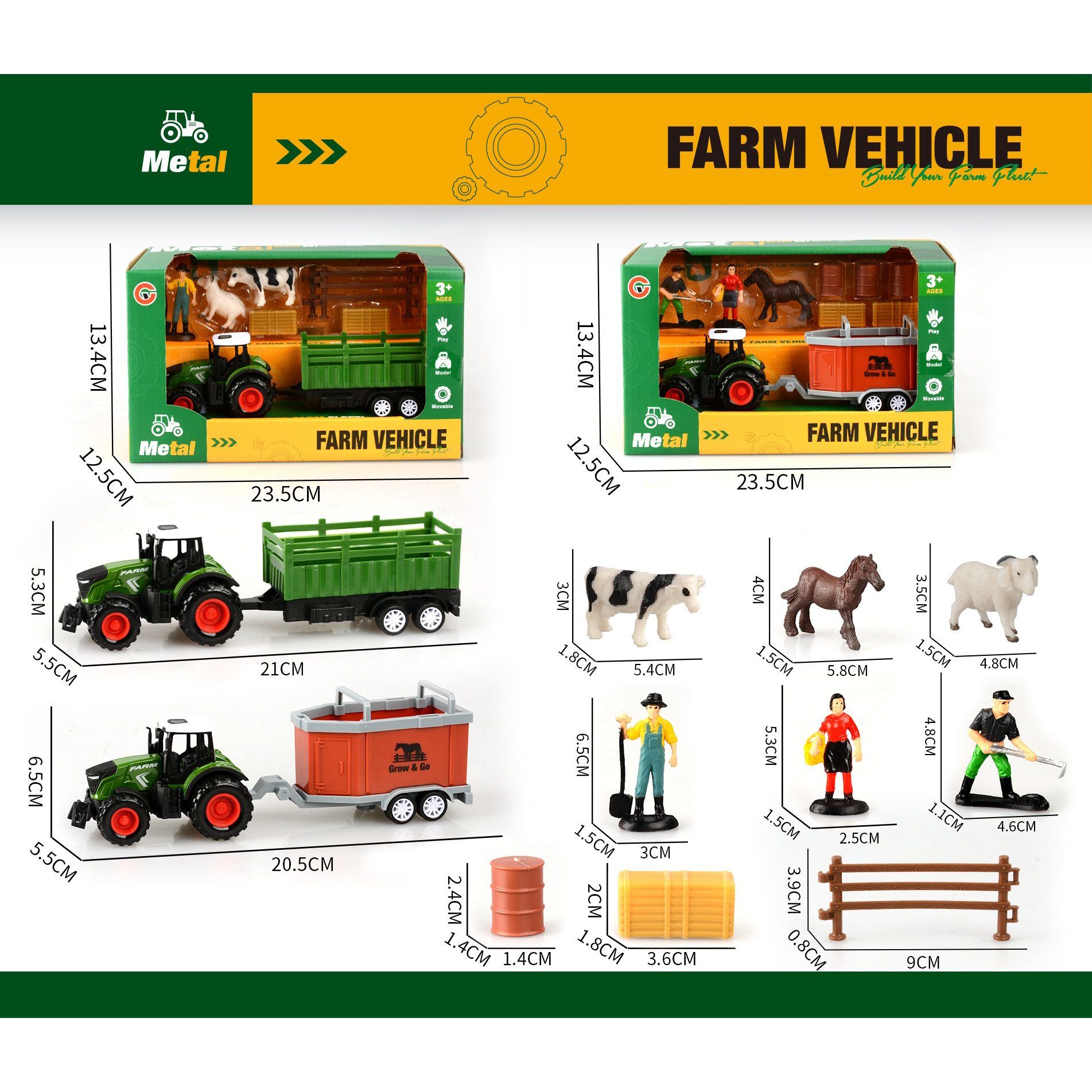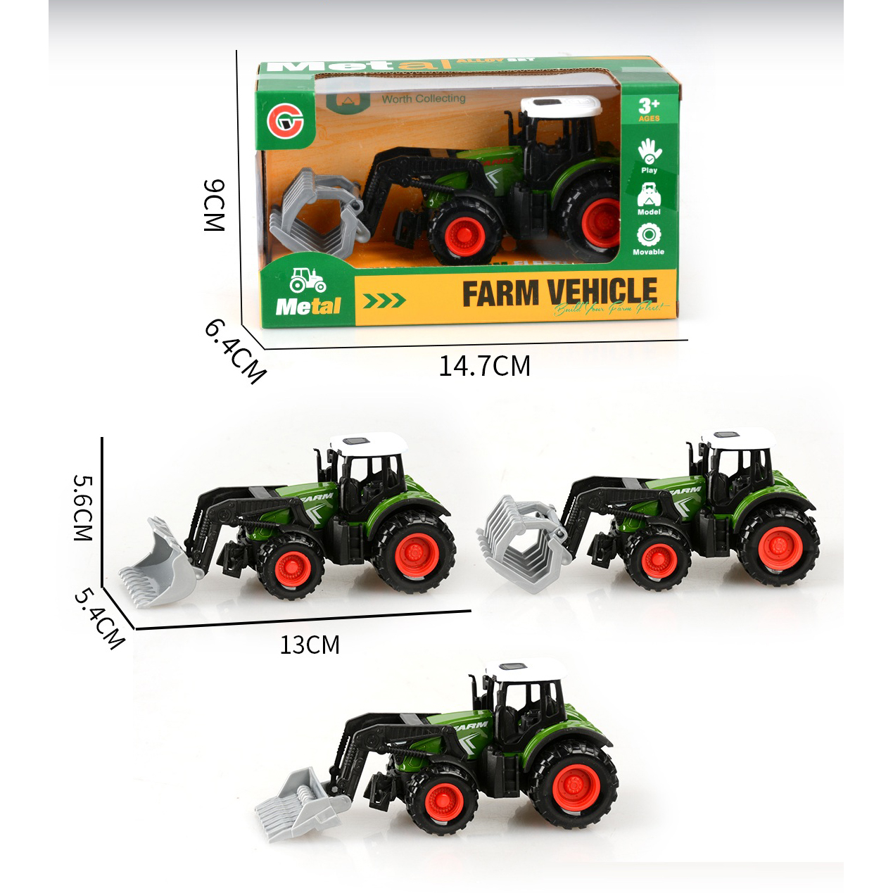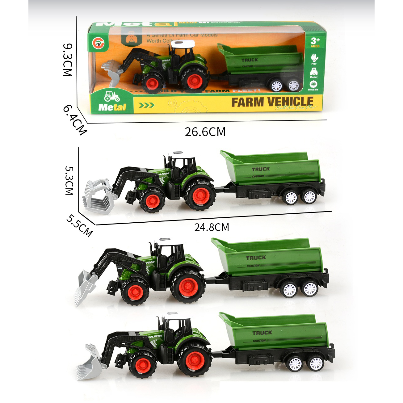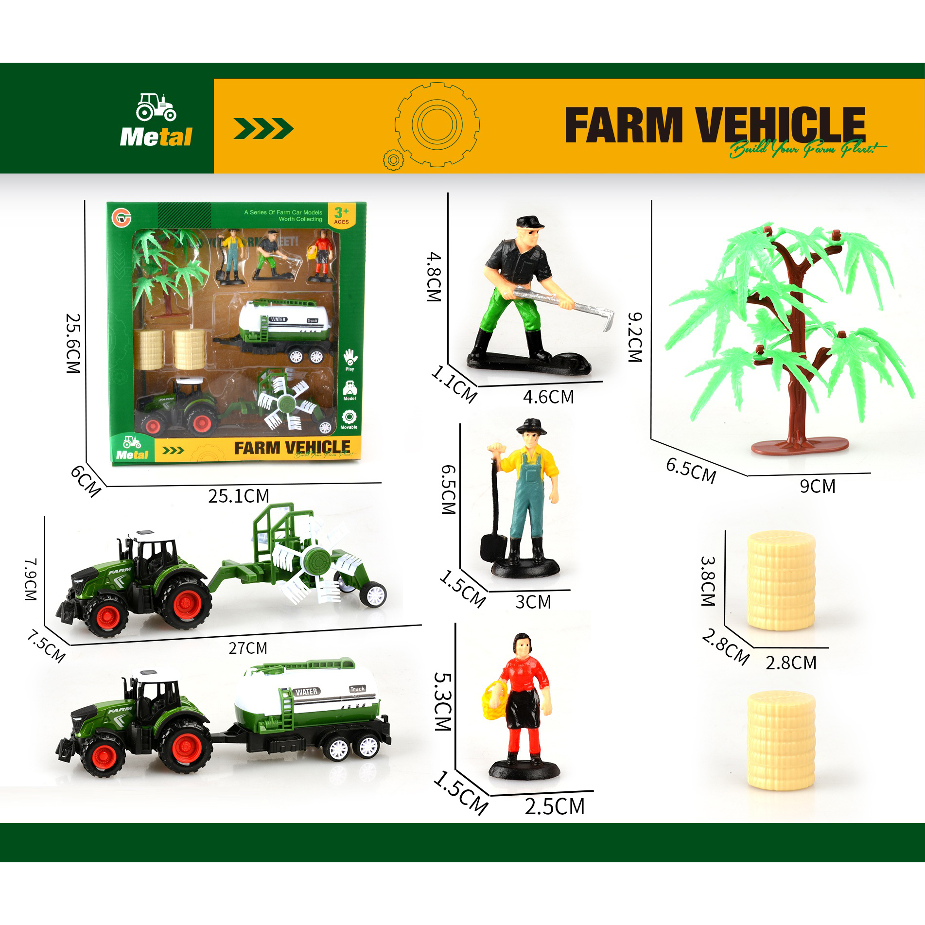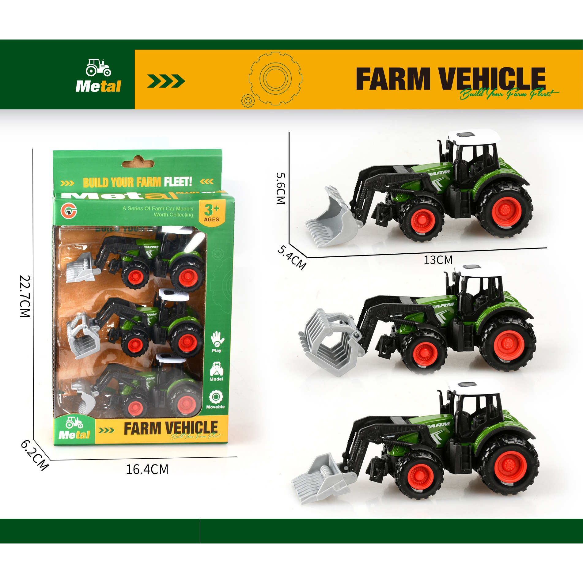 3-pack alloy pull-back farm vehicle set with 3 figurines |