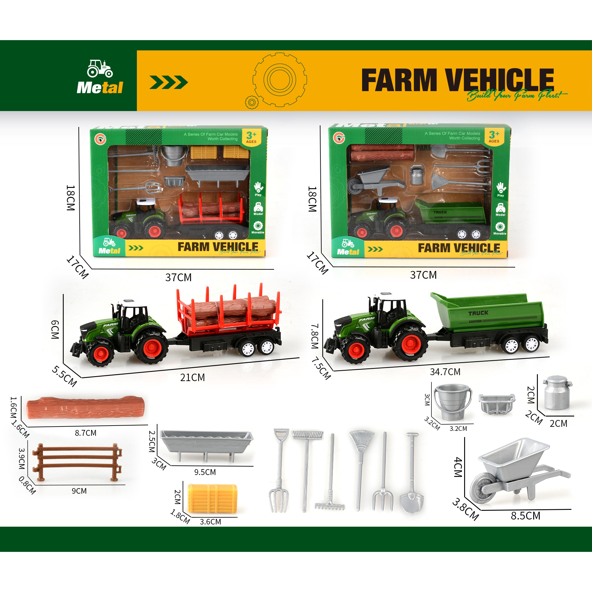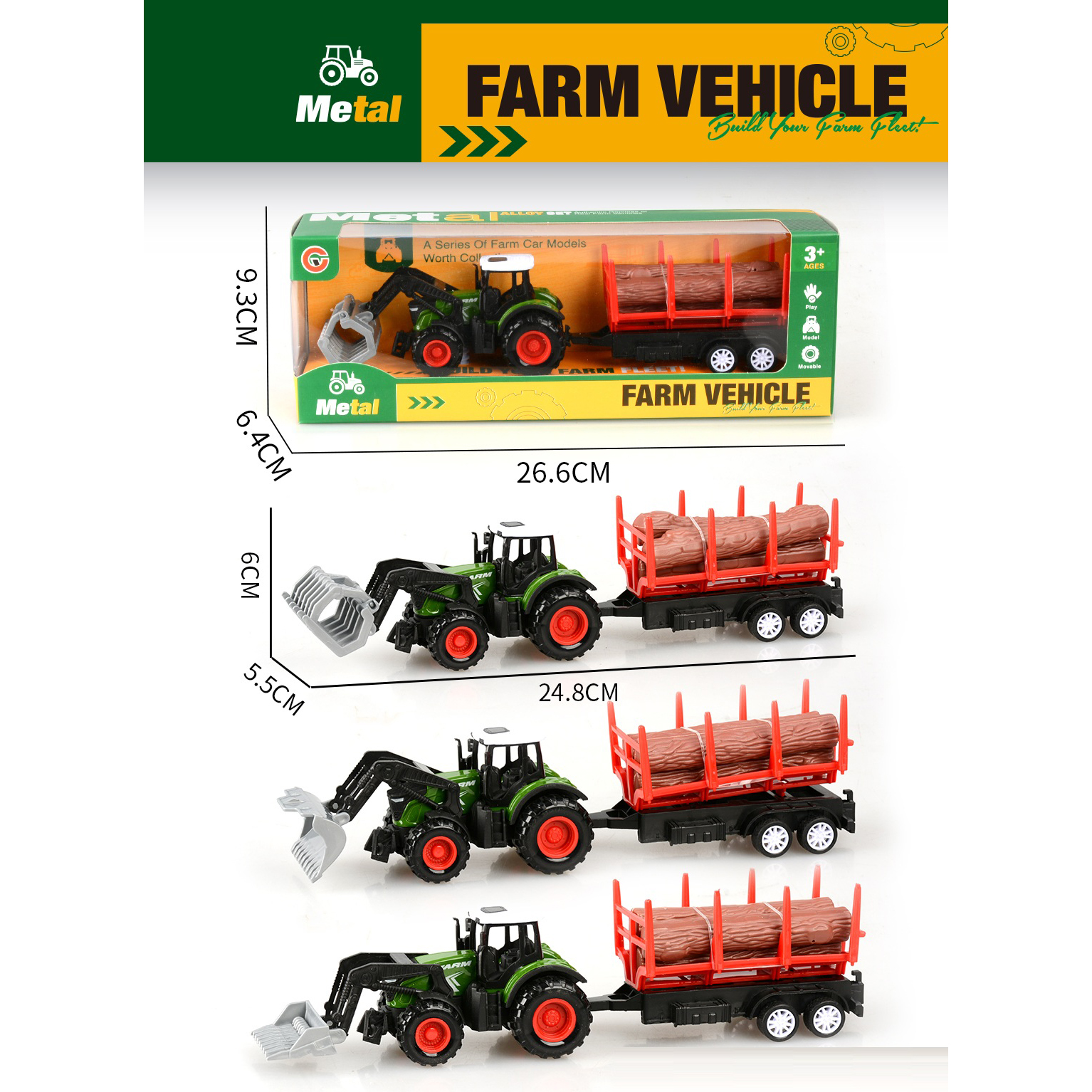 Alloy pull-back farm vehicle with timber trailer |