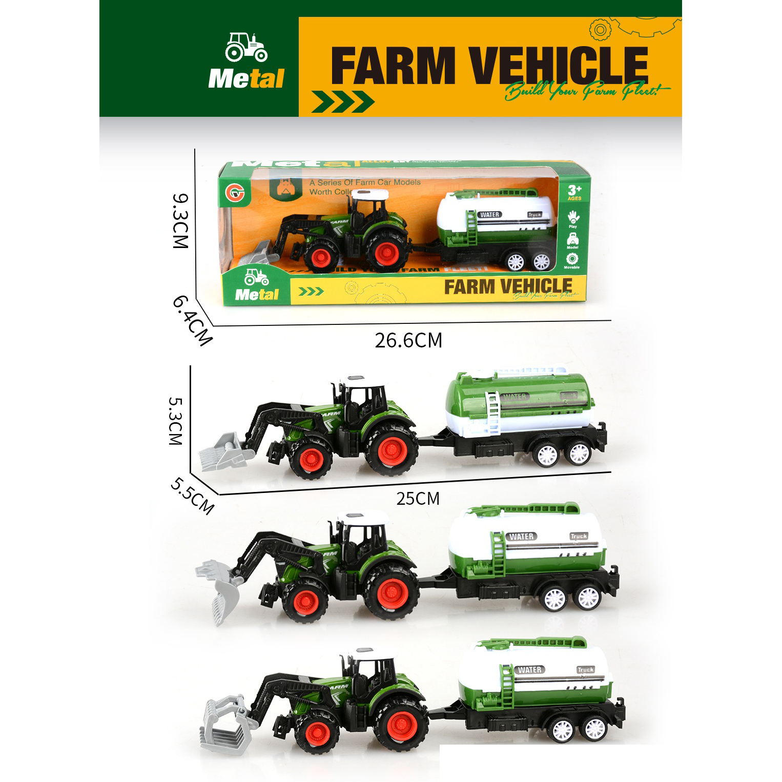 Alloy pull-back farm vehicle with water tank trailer |