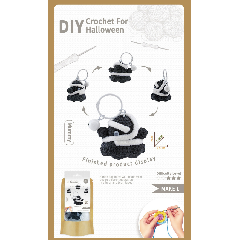 DIY钩织万圣-木乃伊挂件牛皮袋装(含制作工具) |