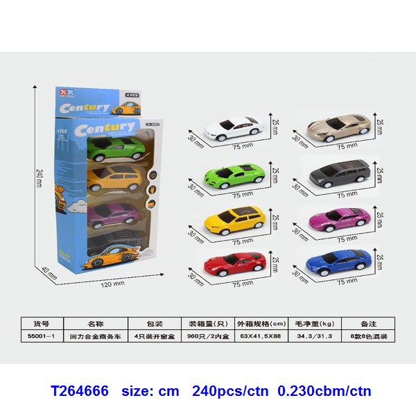 4只回力合金商务车(8款8色混装) |