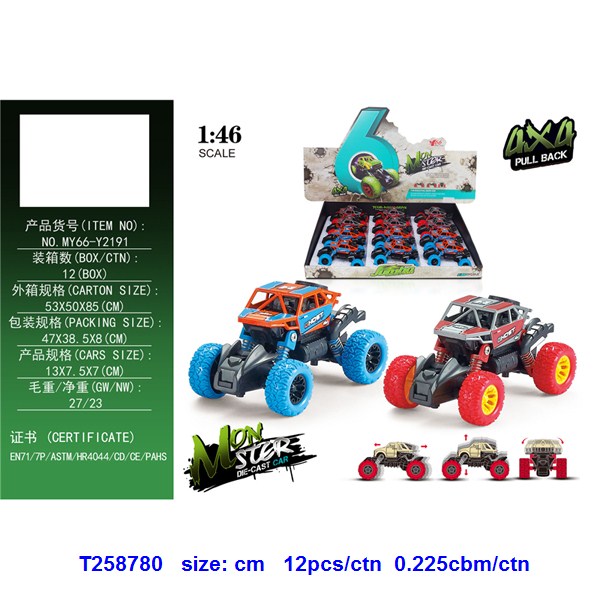 1:46 合金前后回力带弹簧避震攀爬车1款2色混装 |
