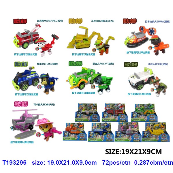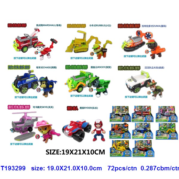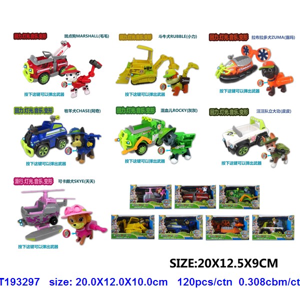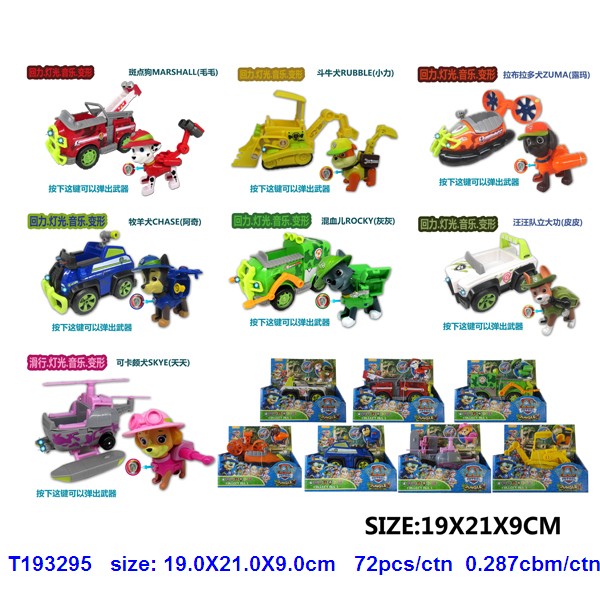 5.5-6.5寸丛林狗车(发光发声+回力 注直升飞机无回力功能,摩托车无回力无发光功能)+2.5寸丛林狗(有功能可弹开)8款 |