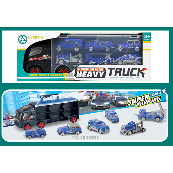 手提滑行收纳货柜车(6只滑行合金警车仔) |