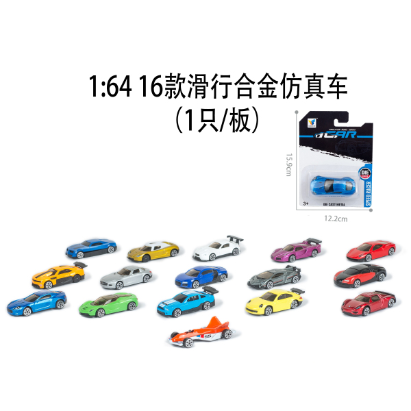 1:64 16款滑行合金仿真车 (1只/板) |