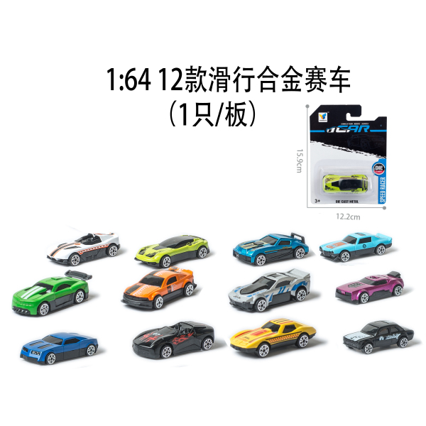 1:64 12款滑行合金赛车 (1只/板) |