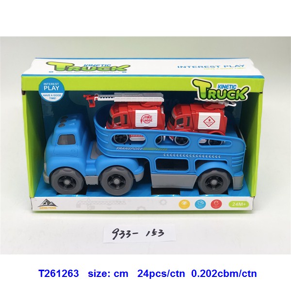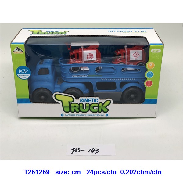 滑行卡通拖头运输车(配2只惯性消防车)蓝.绿2色混装 |