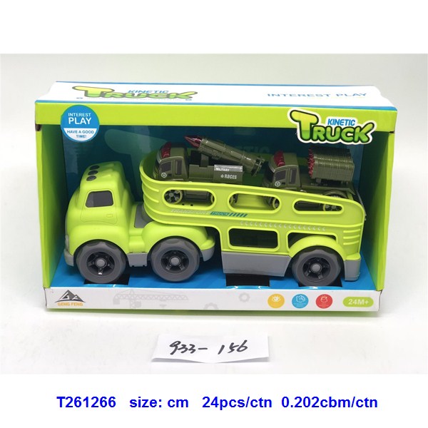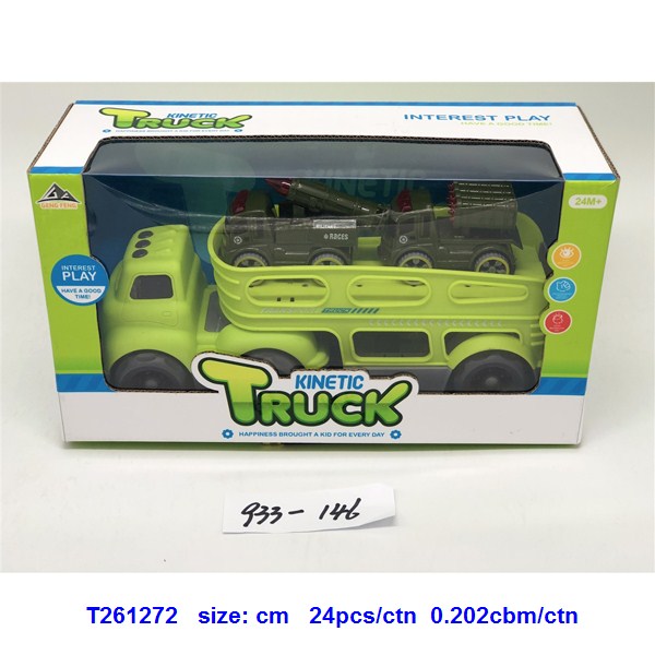 滑行卡通拖头运输车(配2只惯性军事车)蓝.绿2色混装 |