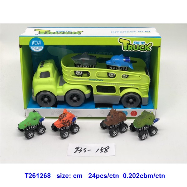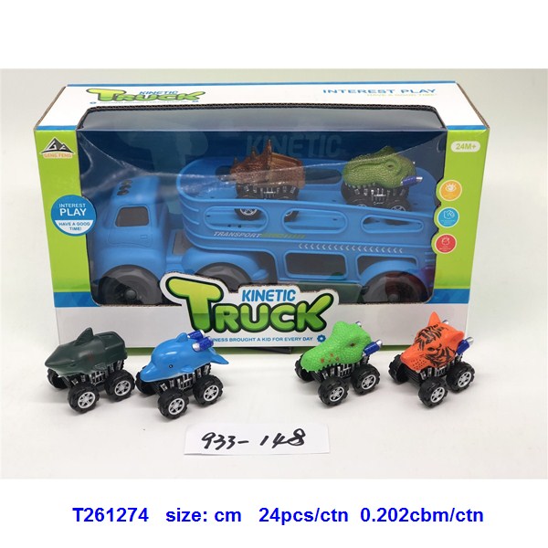 滑行卡通拖头运输车(配2只回力动物车)蓝.绿2色混装 6款动物车随机搭配 |