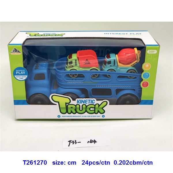 滑行卡通拖头运输车(配2只惯性工程车)蓝.绿2色混装 |