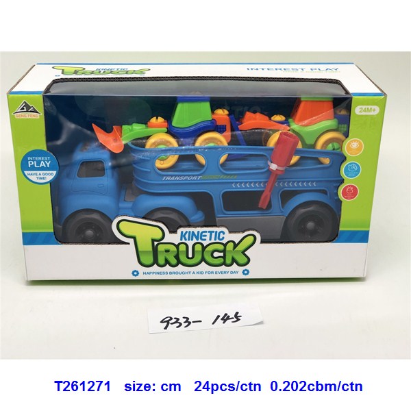 滑行卡通拖头运输车(配2只拆装卡通车)蓝.绿2色混装 |