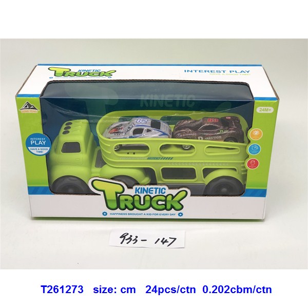 灯光音乐-滑行卡通拖头运输车(配2只回力合金车)蓝.绿2色混装 4款回力合金车随机搭配 |