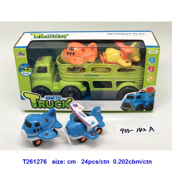 灯光音乐-滑行卡通拖头运输车(配2只滑行卡通飞机)蓝.绿2色混装 4款滑行飞机车随机搭配 |