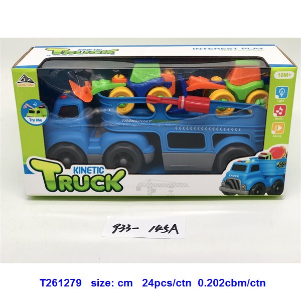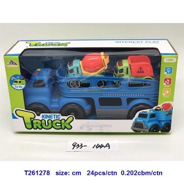 灯光音乐-滑行卡通拖头运输车(配2只拆装卡通车)蓝.绿2色混装 |