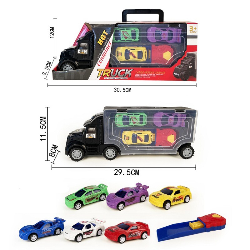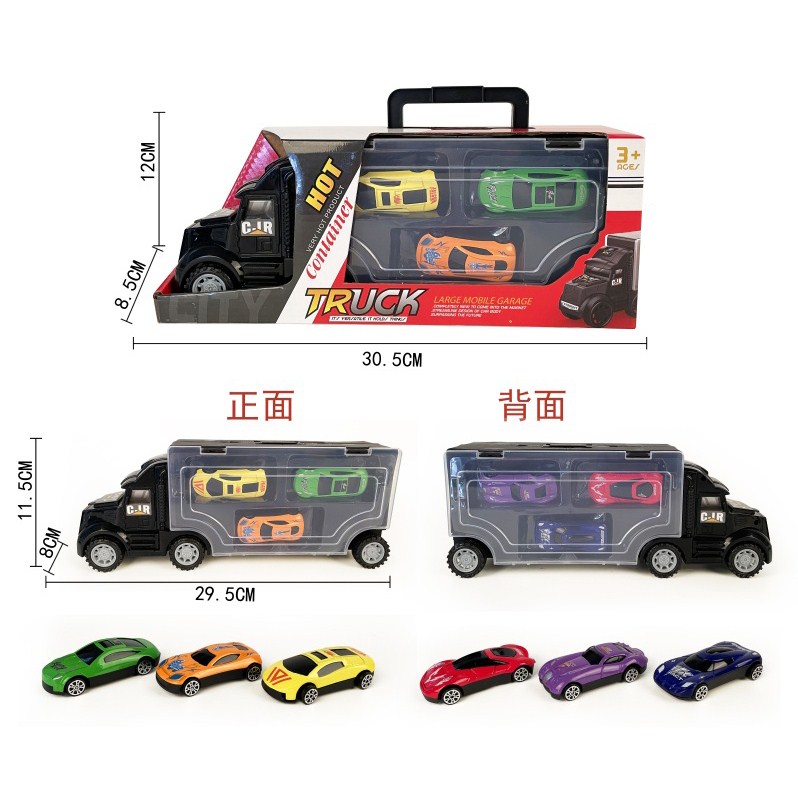 手提礼盒货柜滑行货柜车拖3只回力赛车带弹射器 |