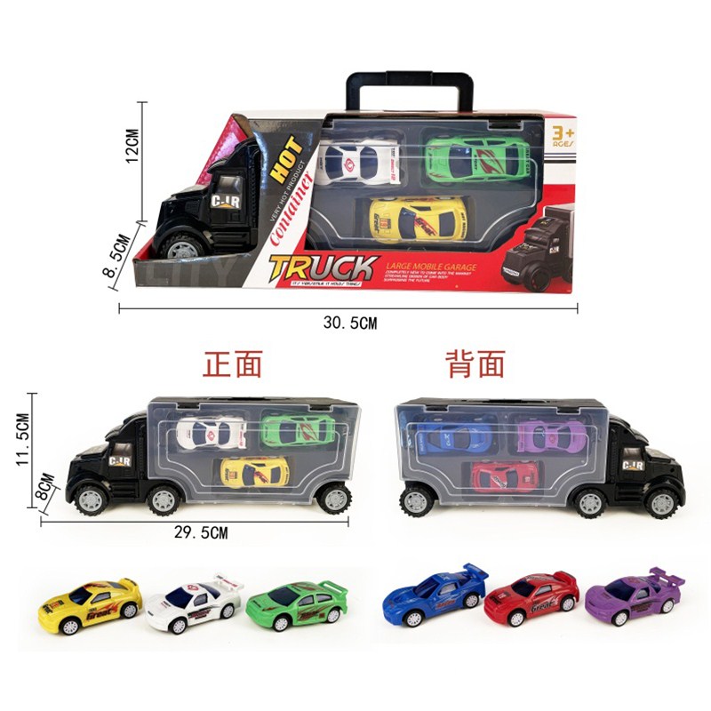 手提礼盒货柜滑行货柜车拖6只回力赛车 |