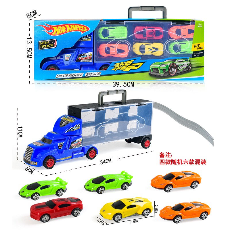 手提礼盒货柜滑行拖头车带6只滑行跑车 |