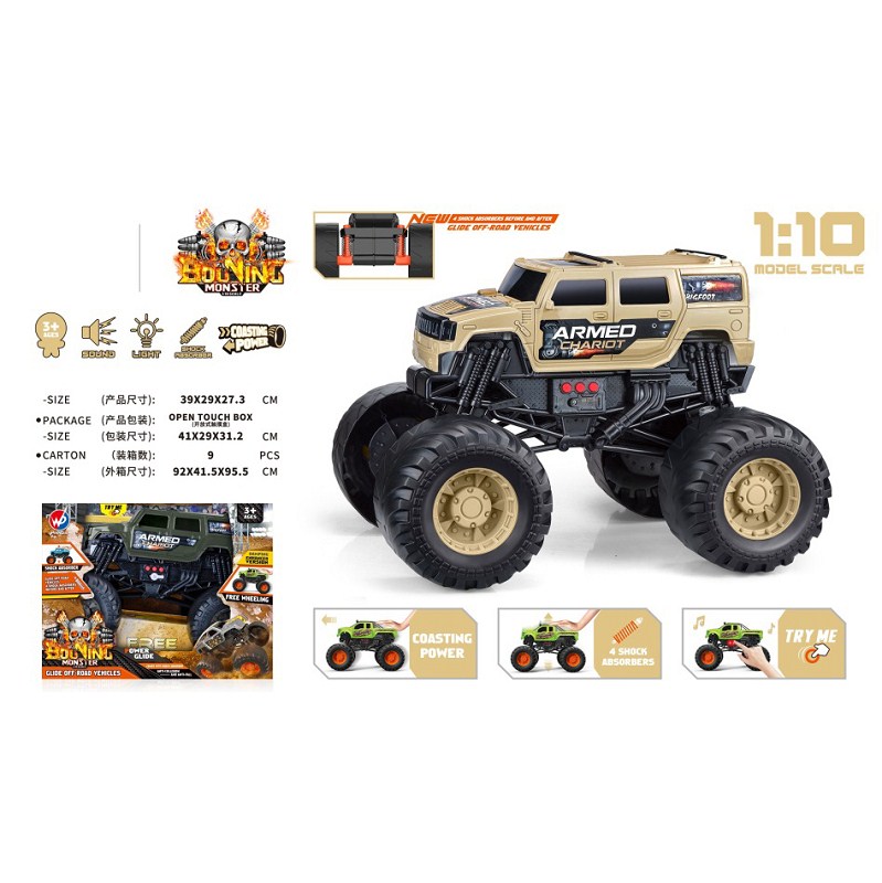 1:10 比例军用悍马怪物车(带灯光音乐)沙漠黄/丛林绿 |