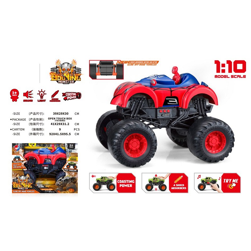 1:10 比例蜘蛛怪物卡车(带灯光音乐)红色 |
