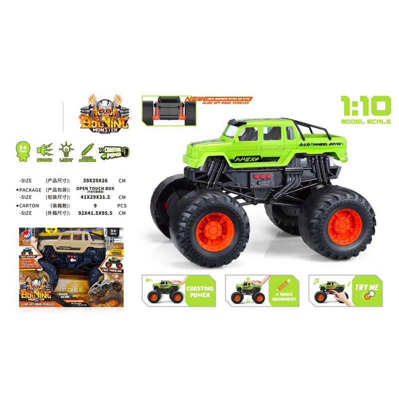 1:10 比例猩猩怪物卡车(带灯光音乐)绿色/黄色 |