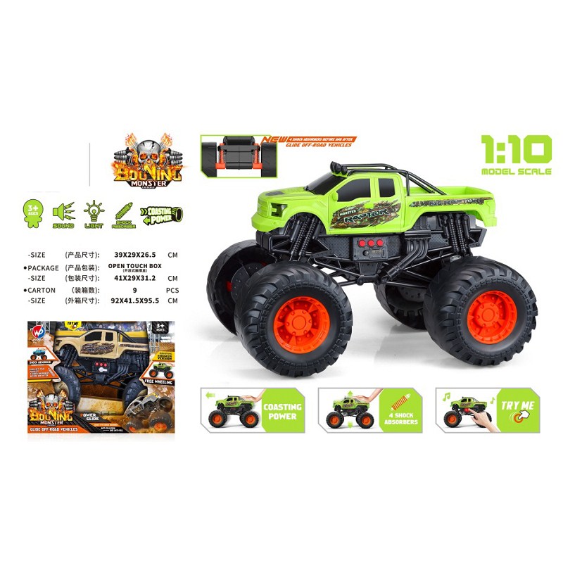 1:10 比例猛禽怪物卡车(带灯光音乐)绿色/沙漠黄 |