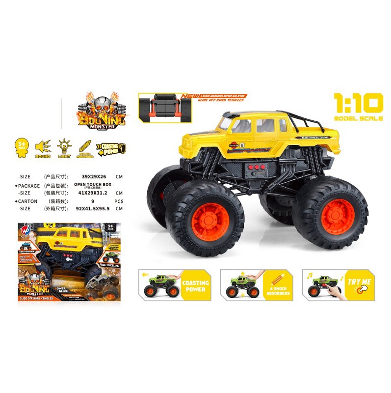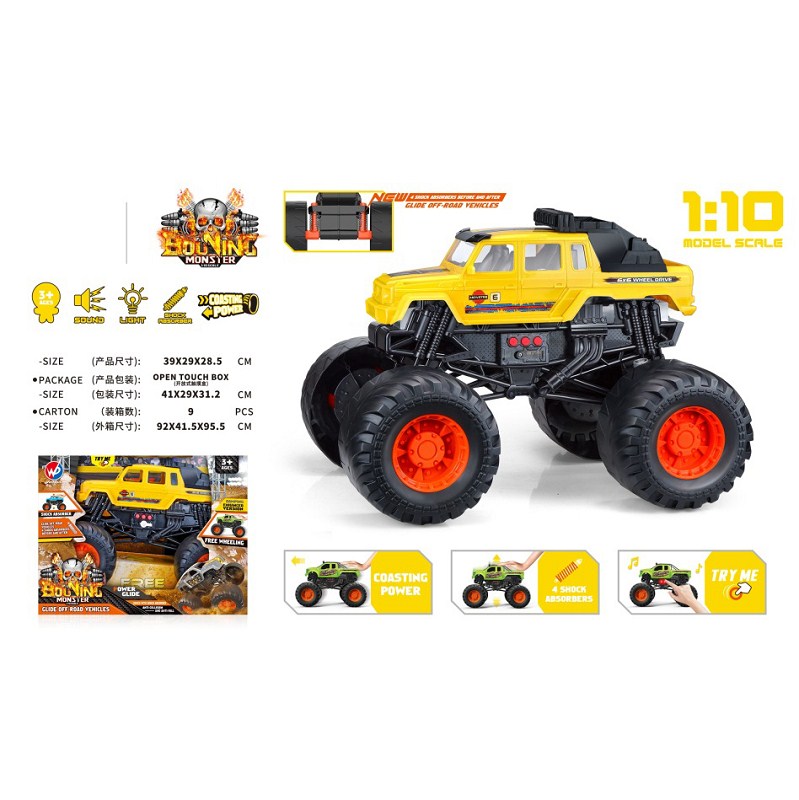 1:10 比例掠食者怪物卡车(带灯光音乐)黄色 |
