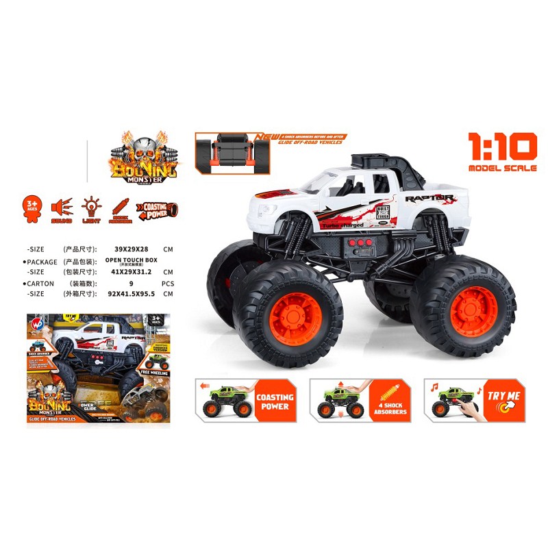 1:10 比例猛禽怪物卡车(带灯光音乐)白色 |